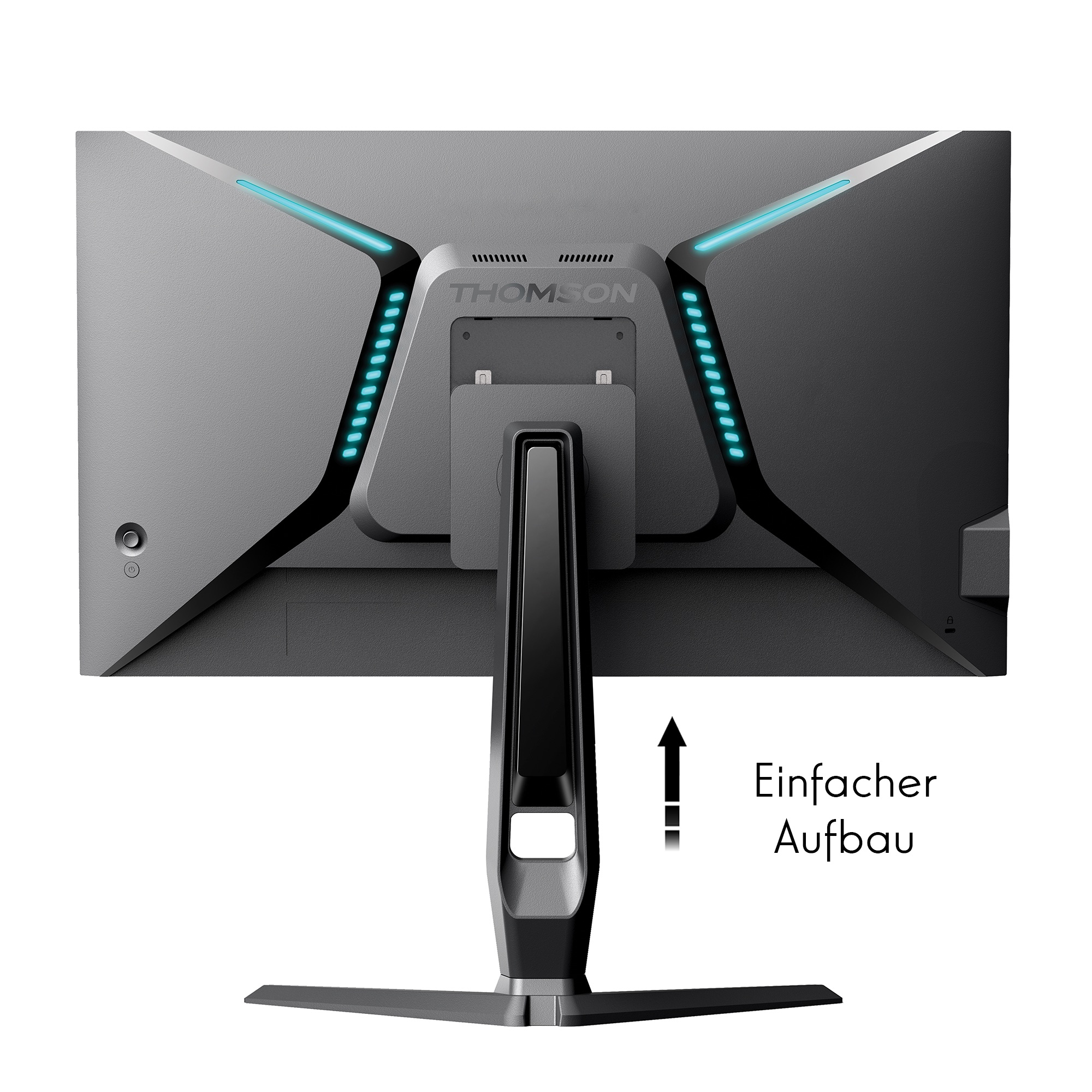 Der Thomson Gaming Monitor bietet eine QHD-Auflösung, schnelle Reaktionszeiten, RGB-Umgebungsbeleuchtung, und ist für detaillierte Bildqualität und flüssiges Gameplay konzipiert.