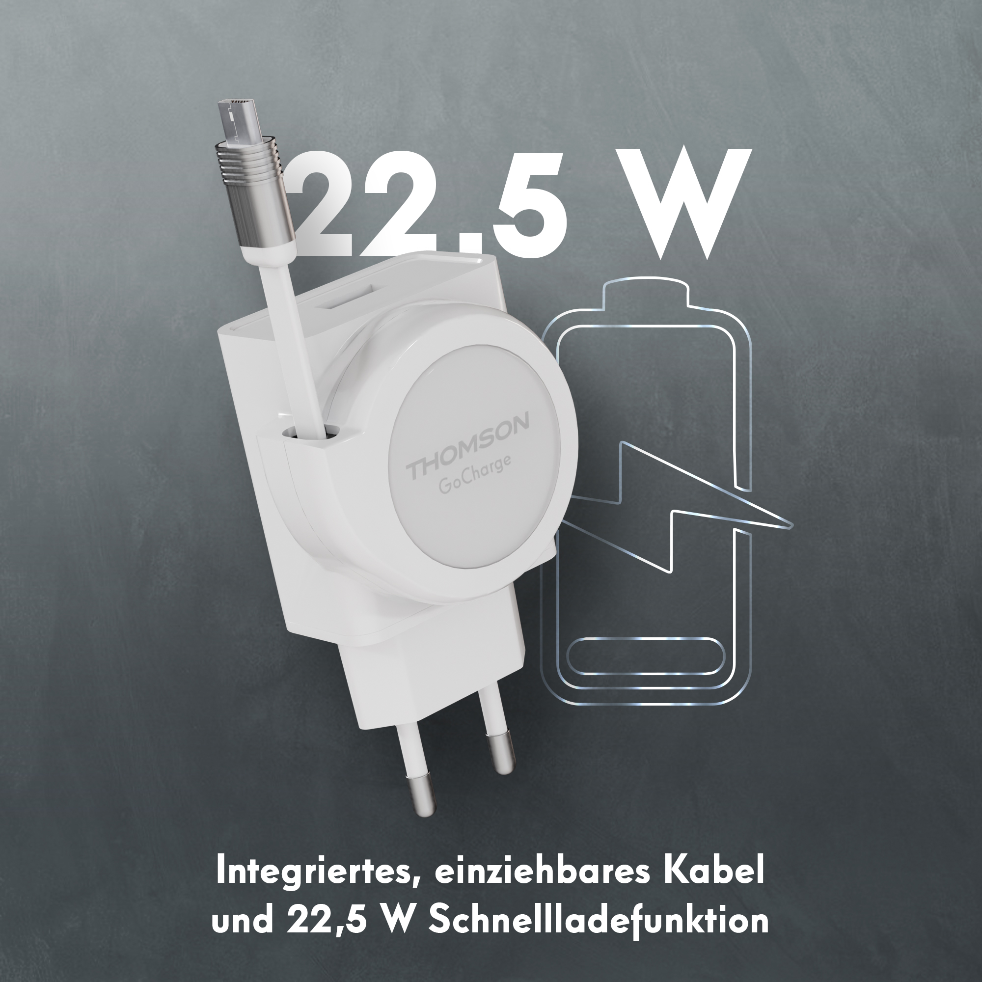 Schnell, flexibel und sofort einsatzbereit. Mit dem kompakten und effizienten Thomson GoCharge E22AC bleiben Sie zu Hause, im Büro oder unterwegs stets mit Strom versorgt. Er wurde mit Blick auf Komfort entwickelt und verfügt über ein einziehbares 90-cm-Kabel, das auf sechs verschiedene Längen eingestellt werden kann, sodass Sie Kabelsalat vermeiden und Ihren Platz ordentlich halten können.