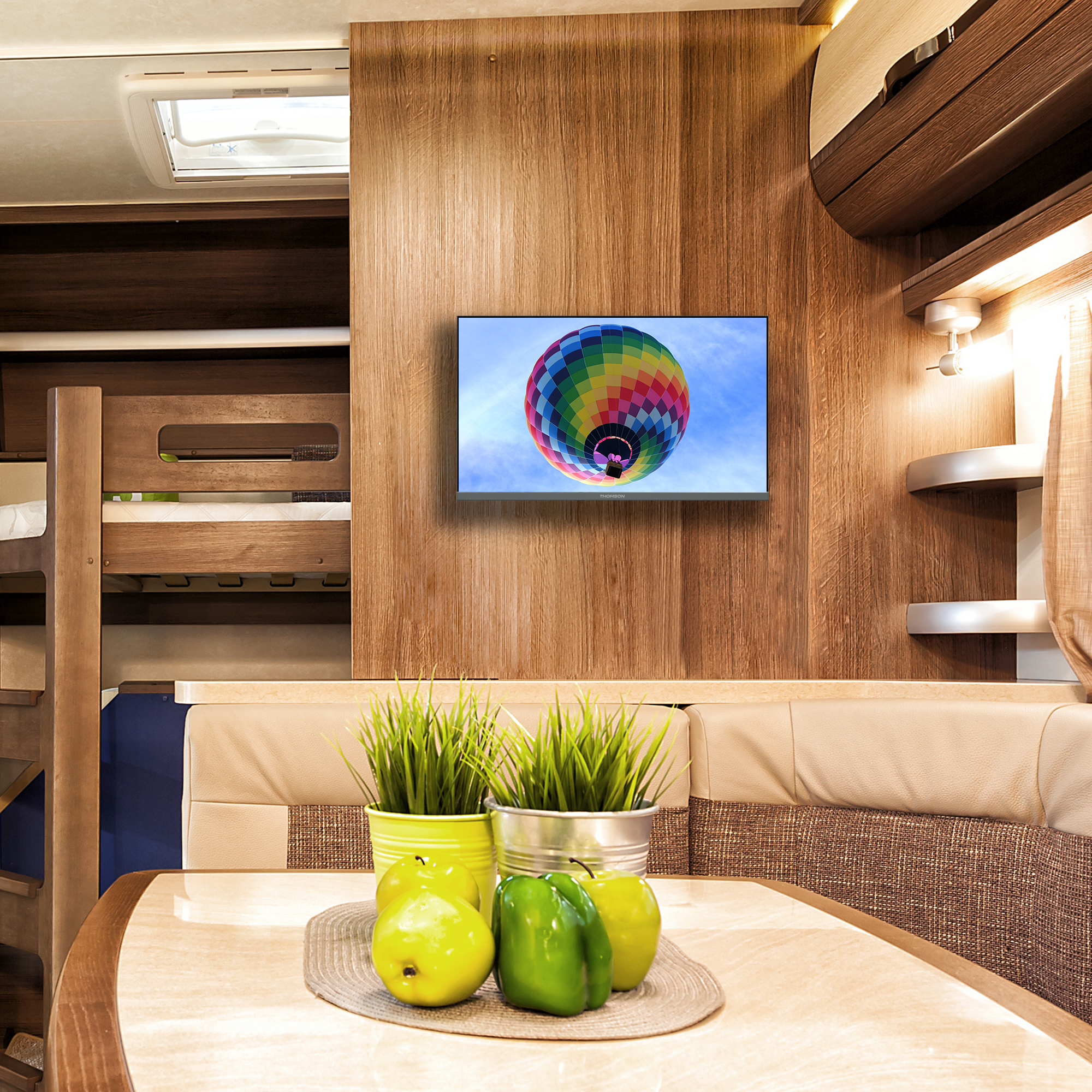 Perfekt für unterwegs: Dank des 12-Volt-Adapters ist dieser TV ideal für Wohnwagen, Wohnmobile und Campingurlaube geeignet. Egal, ob zu Hause oder auf Reisen – dieser vielseitige Smart-TV sorgt dafür, dass Sie keine Unterhaltung verpassen. Und dank der verstellbaren Standfüße kann die Breite der Standfüße von 60 cm auf 30 cm reduziert werden, sodass der Fernseher selbst auf kleinsten Flächen Platz findet.