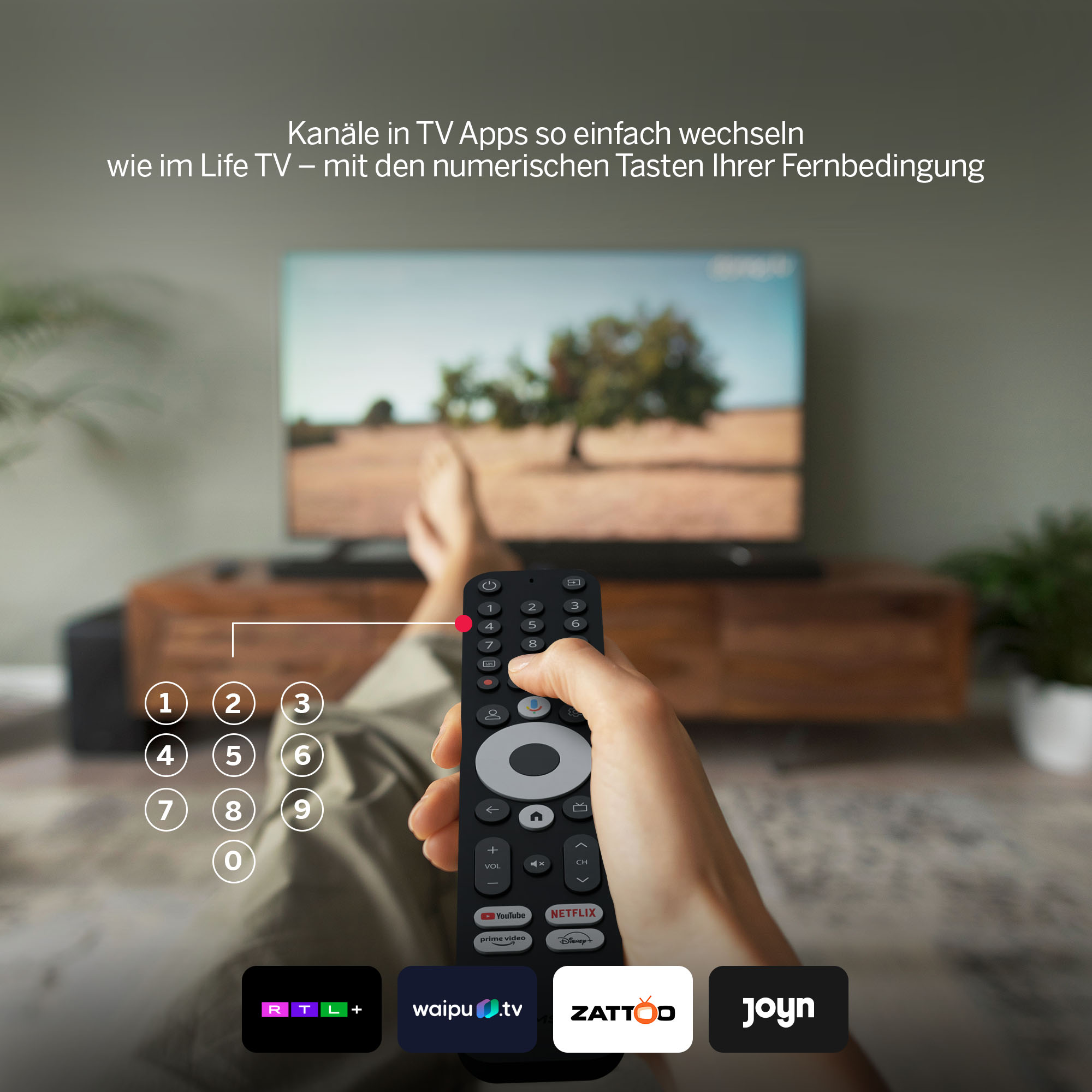 Mit der Thomson Streaming Box können Sie Ihren Fernseher im Handumdrehen in einen Smart TV mit Google TV™ (Android™12) Betriebssystem verwandeln. Genießen Sie Zugriff auf eine riesige Auswahl von Apps, darunter beliebte Dienste wie Netflix, Disney+, Prime Video und YouTube. Ihre Lieblingsserien, Dokumentationen, Musik, Sportevents und vieles mehr sind jetzt nur einen Klick entfernt. Google TV™ vereint Inhalte unterschiedlicher Streaming Dienste auf dem Home Screen, so müssen Sie nicht von App zu App zu springen, um Ihre Lieblingsfilme zu finden.