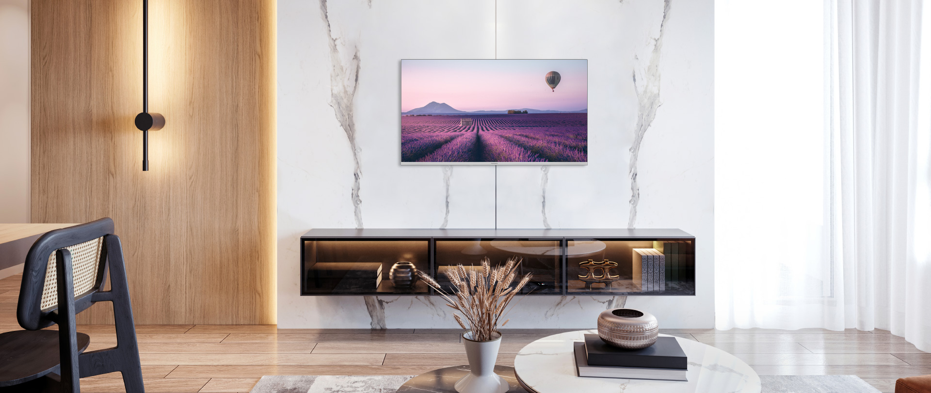 Fully immerse yourself in the on-screen action thanks to the frameless design. With the enhanced screen-to-body ratio, you can enjoy a wider viewing area. Plus, the modern, sleek design blends seamlessly into your living space.