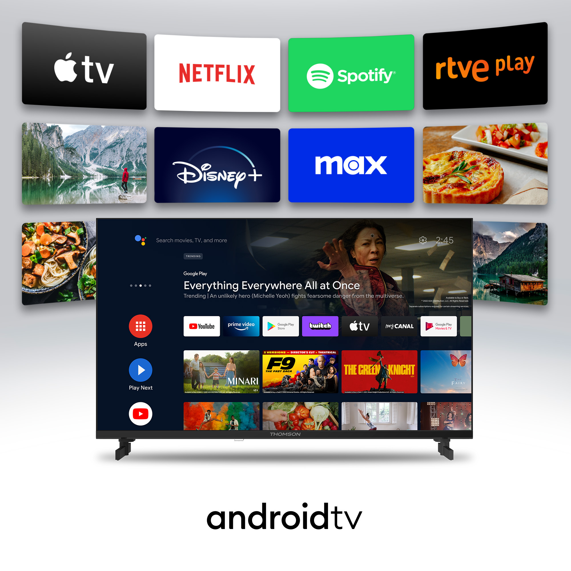 El sistema Android TV hace que tu experiencia de televisión sea aún más cómoda: accede a 400.000 películas y programas de televisión de varios servicios de streaming, control inteligente de voz con Google Assistant y Google Cast integrado para hacer streaming directo de películas, música y vídeos desde dispositivos inteligentes compatibles hacia el televisor.
