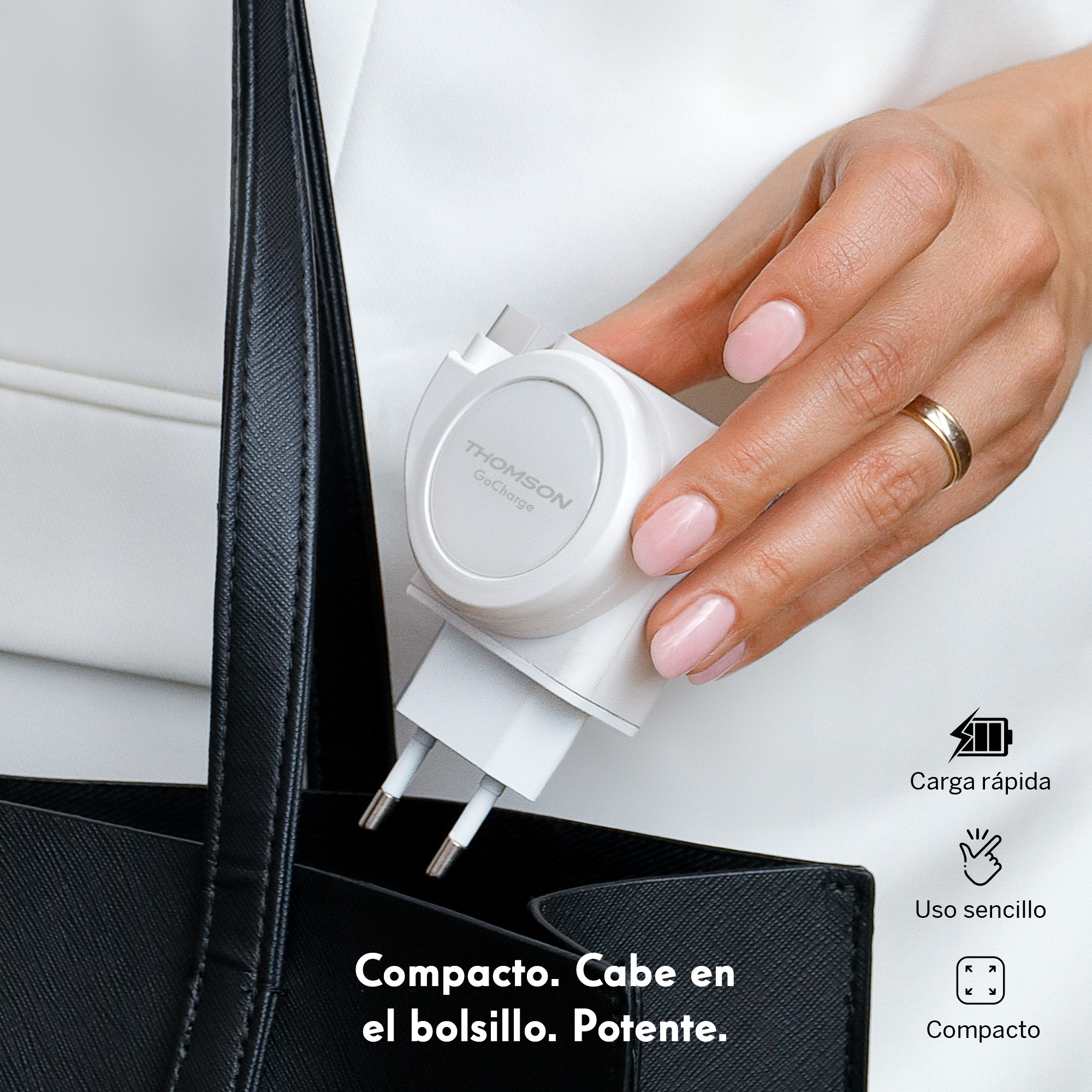 Rápido, flexible y listo para usar. Mantenga sus dispositivos cargados en casa, en el trabajo o mientras se desplaza con el compacto y eficiente Thomson GoCharge E22AC. Diseñado pensando en la comodidad, cuenta con un cable retráctil de 90 cm que se ajusta a seis longitudes diferentes, lo que le ayuda a evitar el desorden de cables y a mantener su espacio ordenado.