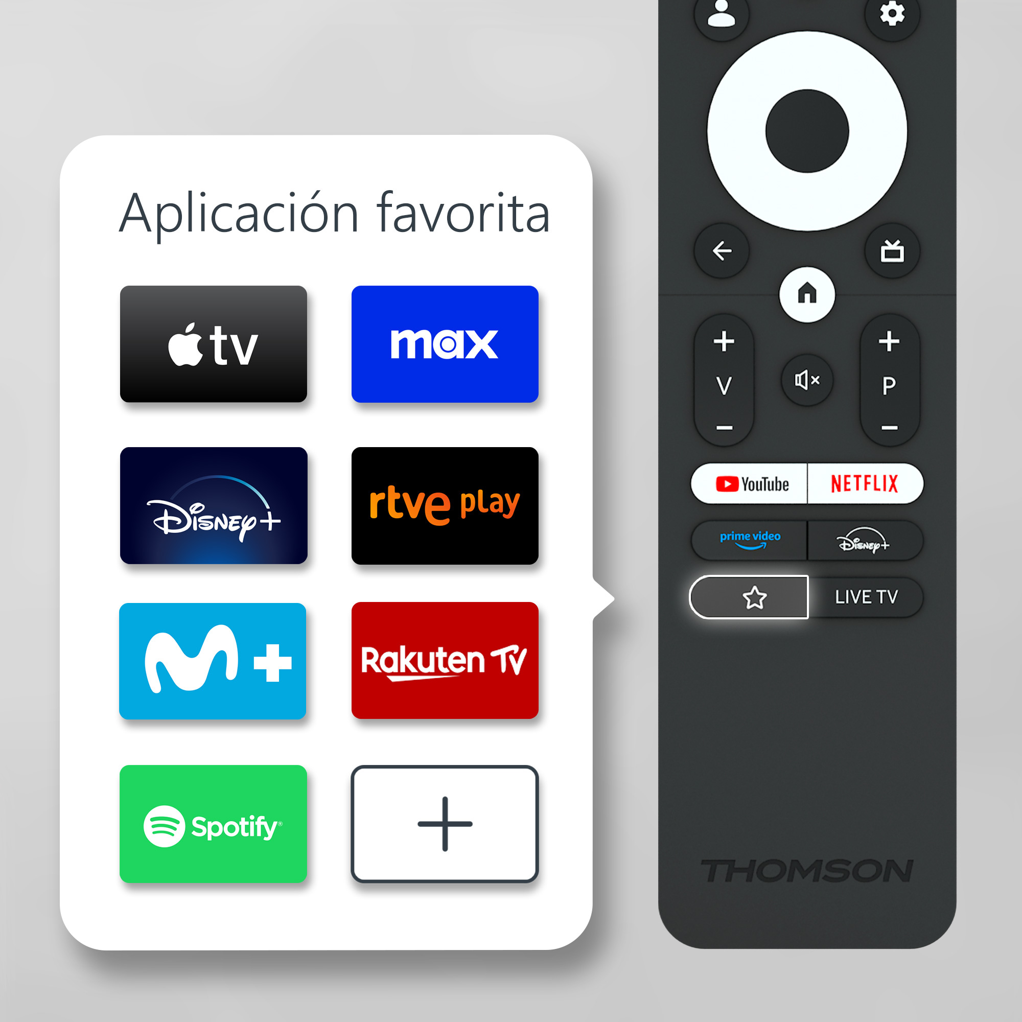 | Direct access buttons on remote control | Youtube, Netflix, Prime Video, Disney +, Apple TV, Live TV |