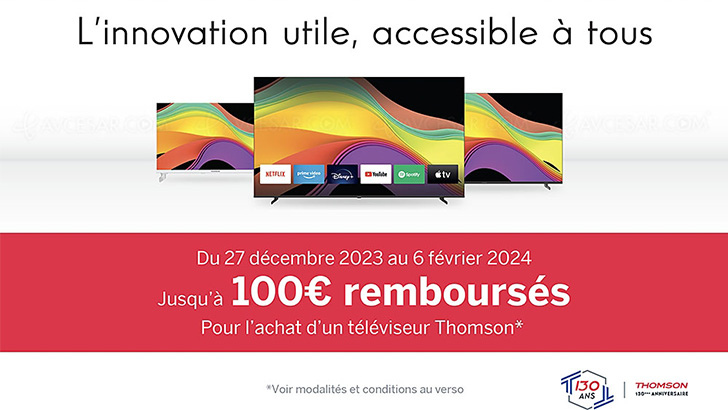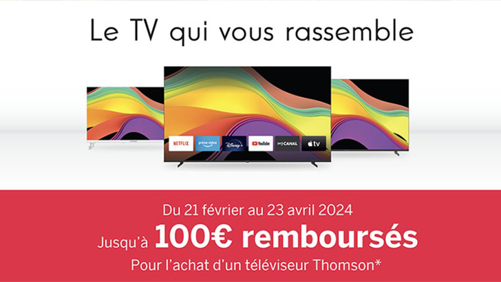 La marque annonce en effet la série TV Thomson Scenium Mini LED, 55MG7S13 (140 cm) et 65MG7S13 (165 cm) dotée d'une dalle LCD 144 Hz, des compatibilités HDR Dolby Vision et Dolby Atmos, de la fonction Smart Google TV, de Chromecast (intégré), de deux HDMI 2.1, de deux HDMI 2.0, de trois USB (dont un 3.0), d'une sortie optique, d'une entrée Composite, d'un port Ethernet, d'un port CI+ et des tuners DVB‑T2, DVB‑S2 et DVB‑C.