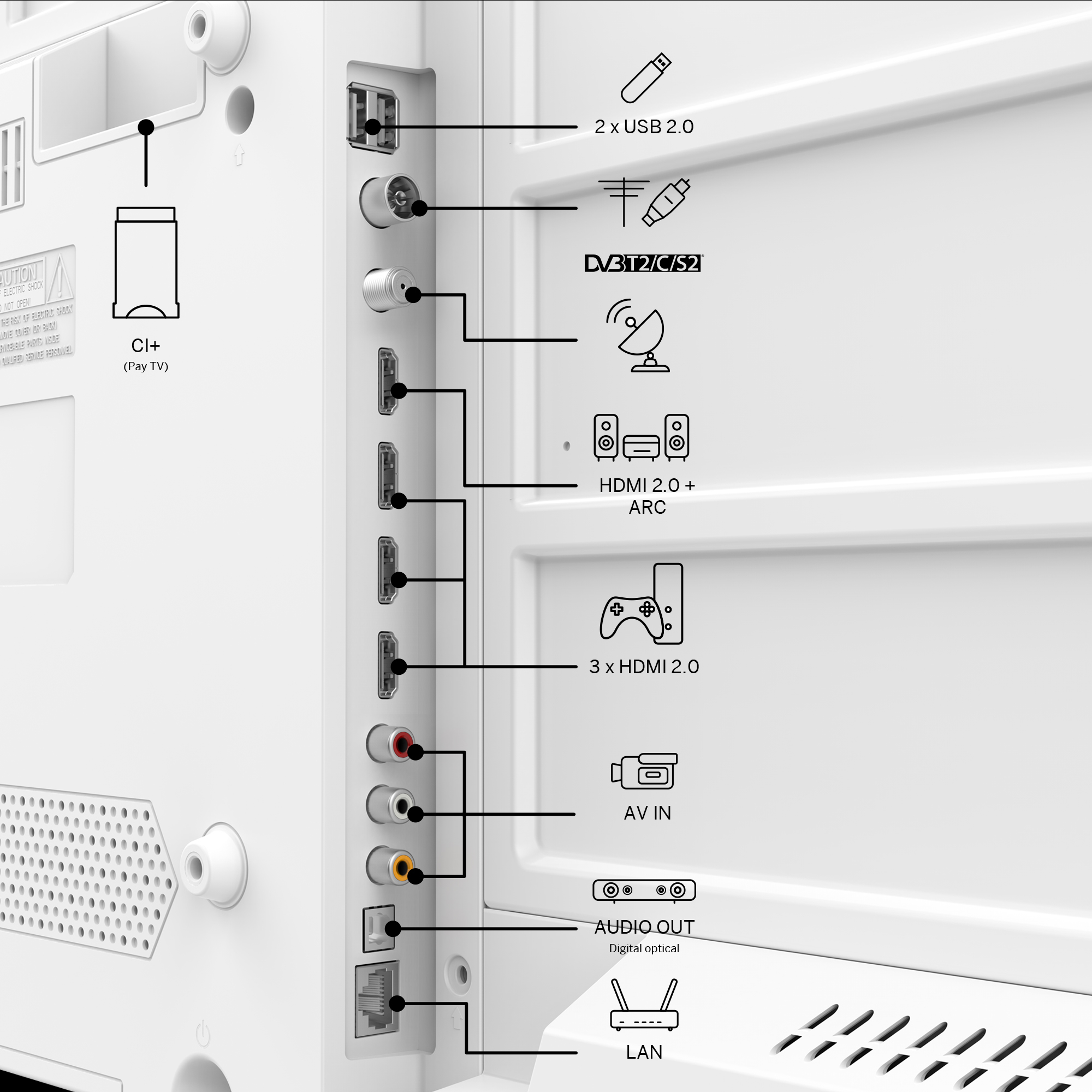 Android TV rend votre expérience télévisuelle encore plus pratique : accès à plus de 400 000 films et émissions de télévision à partir des nombreuses applications disponibles, contrôle vocal intelligent avec Google Assistant, Chromecast intégré pour diffuser sans fil des films, de la musique et des vidéos à partir d'appareils compatibles. Et avec le bouton "Favoris" de votre télécommande, accédez rapidement à votre application préféré.