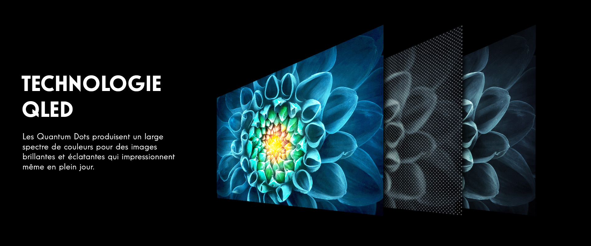 Equipé de nanocristaux Quantum Dot, un écran QLED offre une luminosité équilibrée, des contrastes saisissants et une gamme de couleurs élargie. Et le tout, en profitant d'une qualité d'image en Full HD.