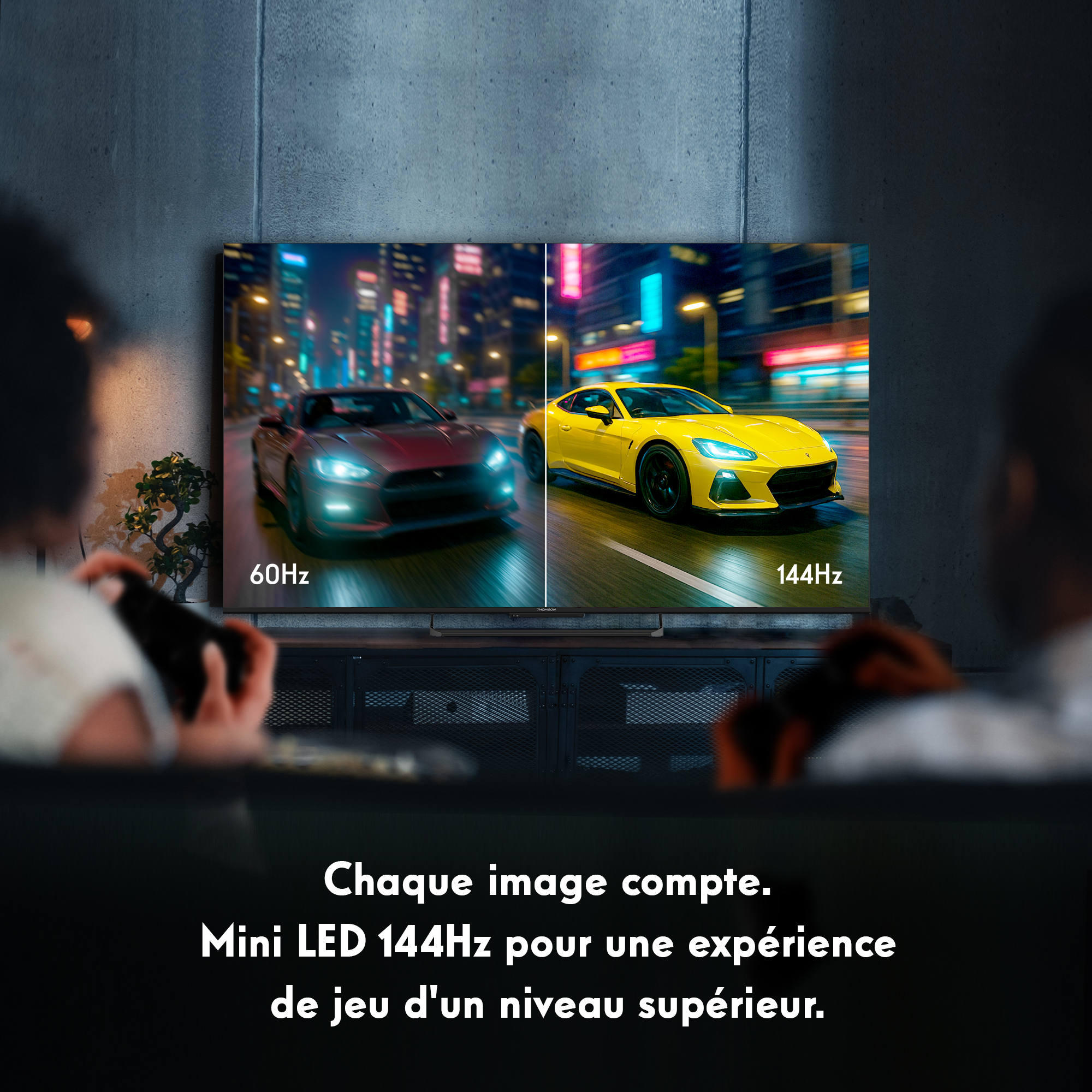 La technologie Mini LED assure des contrastes profonds et lumineux, tandis que Quantum Dot restitue des couleurs naturelles et éclatantes. Associé à la 4K Ultra HD et au Dolby Vision HDR, chaque détail devient plus net, plus clair et plus réaliste.