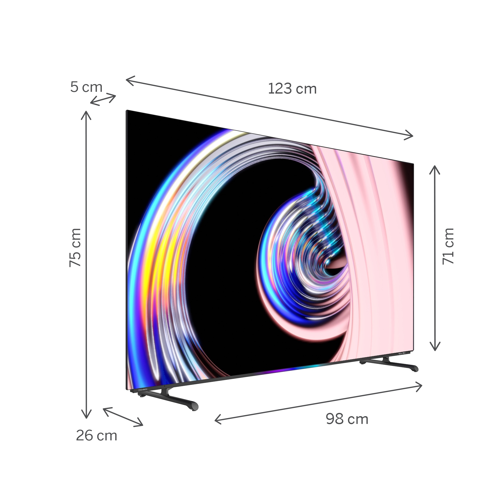 | Dimensions with stand (LxWxH) in mm | 1226x256x752 |