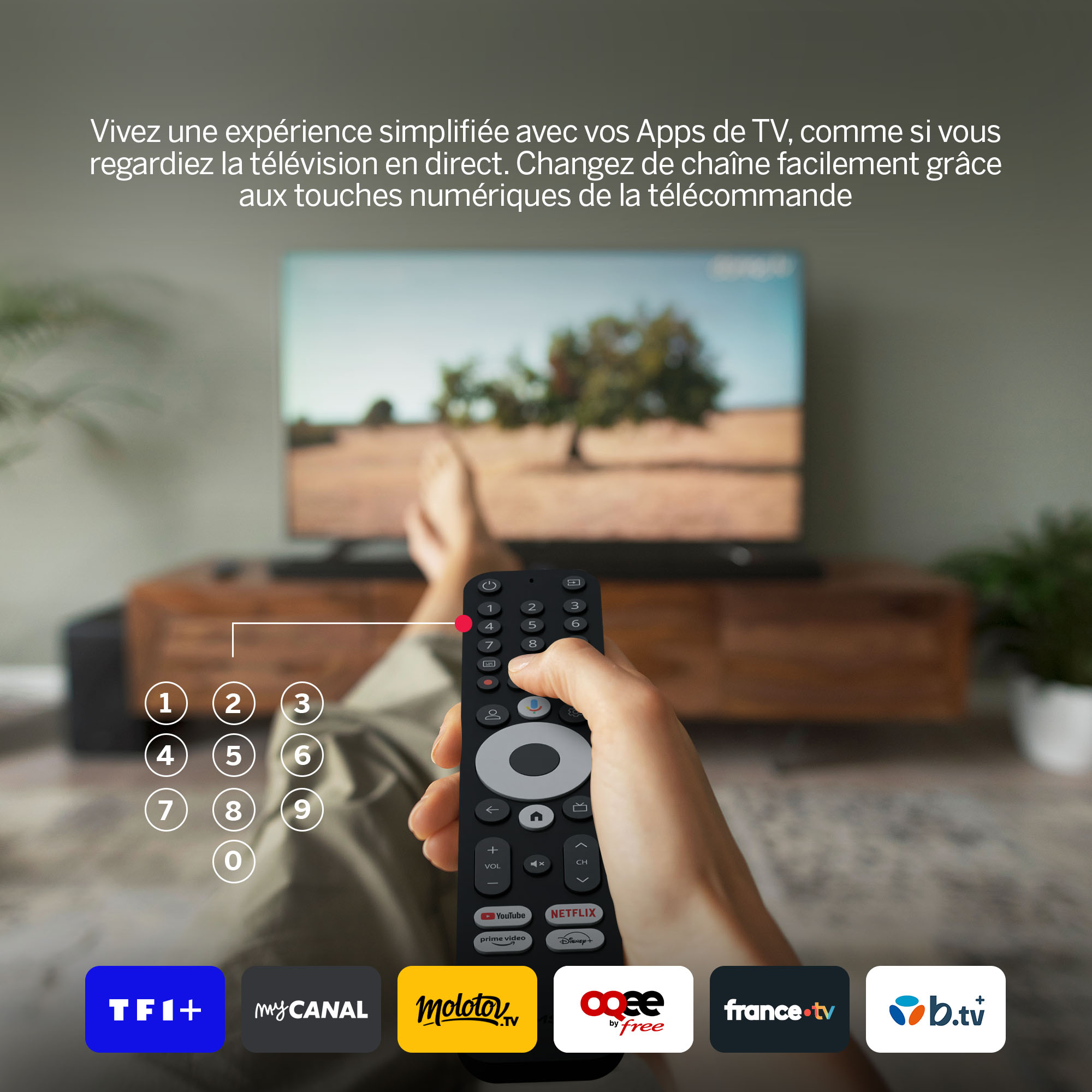 L'une des particularités du Streaming Box 240 de Thomson est la télécommande Bluetooth ergonomique avec Google Assistant. Utilisez votre voix pour trouver des vidéos YouTube, rechercher les derniers blockbusters ou demander à Google des nouvelles et des informations sur Internet. Ouvrez vos applications préférées d'un simple clic avec les touches de raccourci sur la télécommande.