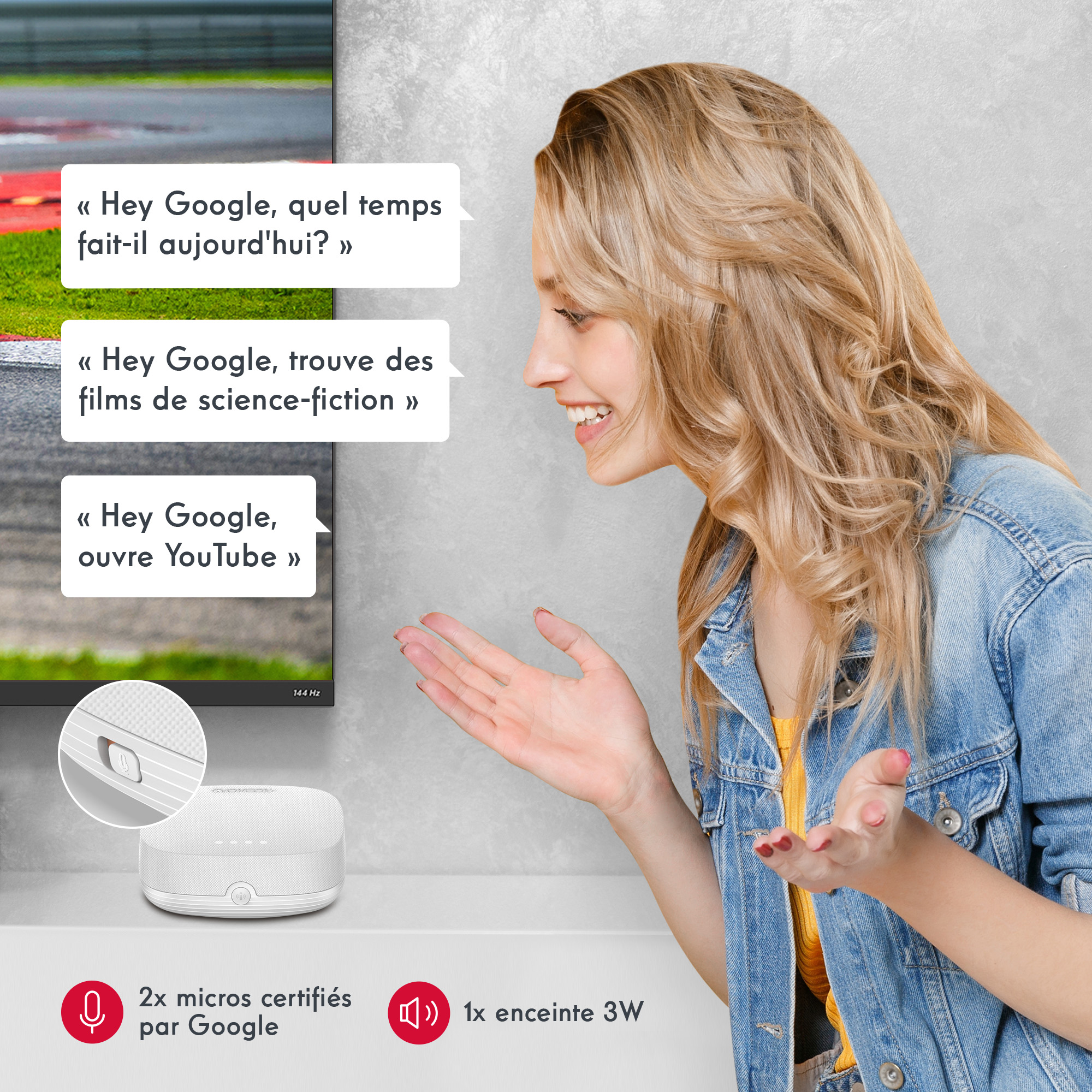 La THOMSON Streaming Box Plus propose également des améliorations pratiques comme un assistant vocal à champ lointain et la fonction "Trouver ma télécommande". Parlez à votre appareil de n'importe où dans la pièce et contrôlez votre téléviseur sans les mains. Les microphones intégrés, certifiés pour l'Assistant Google, garantissent la commodité du contrôle vocal. Elle inclut même un haut-parleur intégré, prêt à répondre à vos questions et demandes.