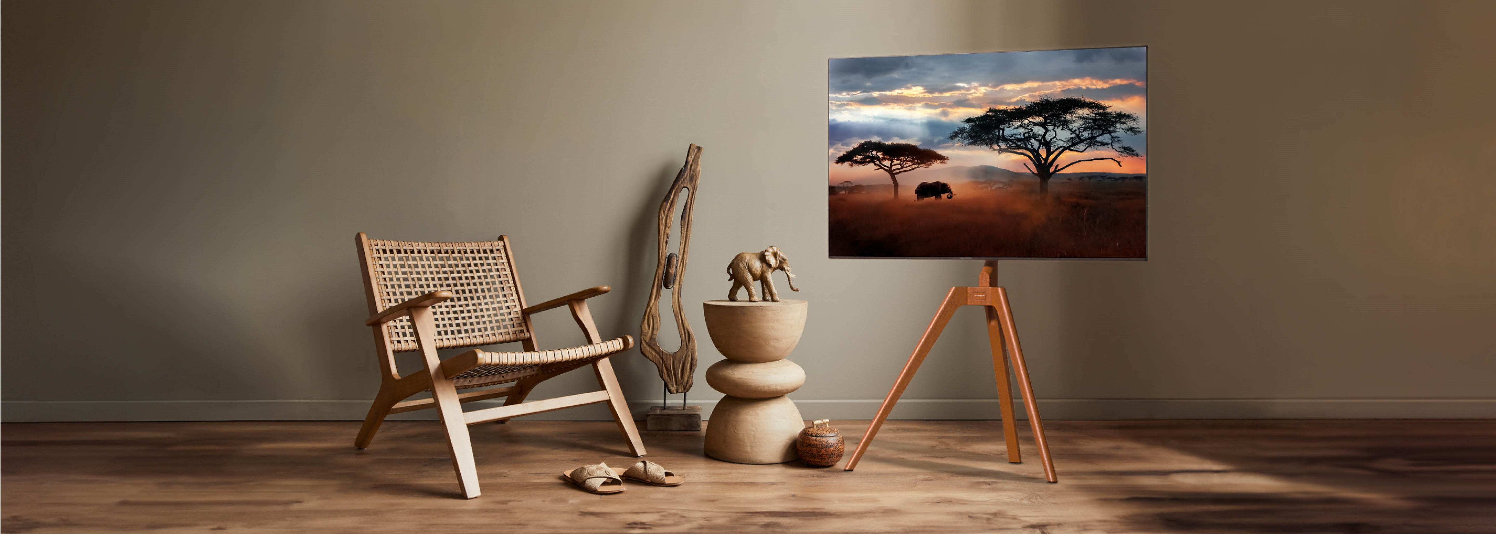 Adjustable Height | Swivel Function ±45°| Concealed Cable Management | VESA Compatible Max 400x400 mm | Maximum Weight 40 kg | Screen Size 45" - 65" | Matte Black & Walnut