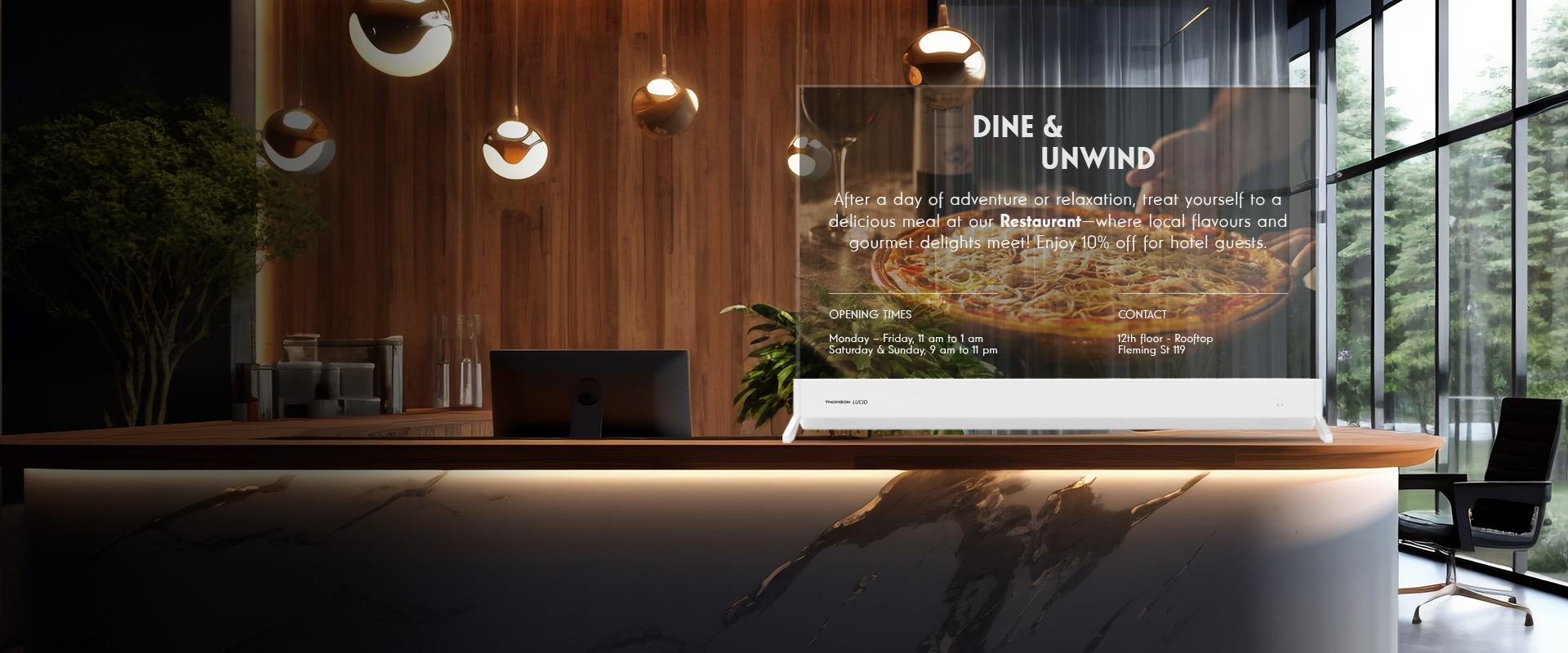 Sperimenti una nuova era di lusso e innovazione con LUCID OLED di Thomson, un vero capolavoro nella tecnologia dell'intrattenimento.Il suo innovativo display trasparente si integra perfettamente in qualsiasi ambiente, trasformandosi in un elegante pannello di vetro quando non viene utilizzato. Questo lo rende un elegante pezzo forte sia per gli interni privati che per gli ambienti commerciali.E ancora meglio? Il touch screen interattivo apre infinite possibilità. Può navigare senza problemi tra le applicazioni, sfogliare i contenuti o personalizzare la sua esperienza con un semplice tocco.Il LUCID OLED è più di un televisore; è un simbolo di raffinatezza e un gioco per i rivenditori, che rivoluziona il modo in cui i prodotti vengono presentati nei display di fascia alta. Entri oggi nel futuro della tecnologia.