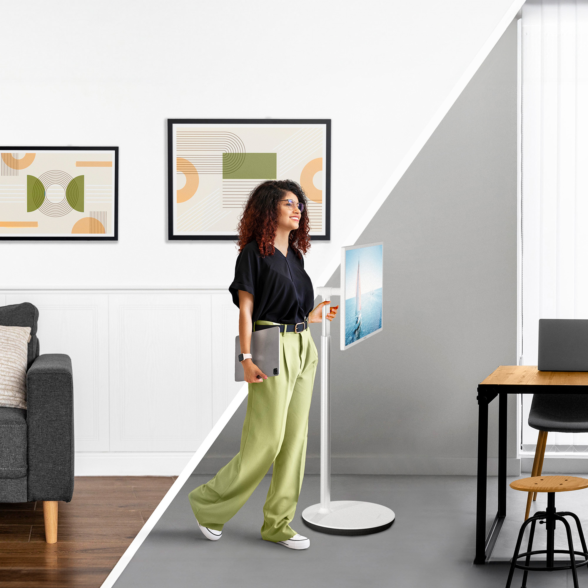 Perché il tuo schermo dovrebbe rimanere sempre nello stesso posto? Senza limiti di spazio, GO TV offre la libertà di guardare ovunque. In cucina, in camera da letto o all'aperto, questo display portatile si adatta perfettamente a qualsiasi ambiente.