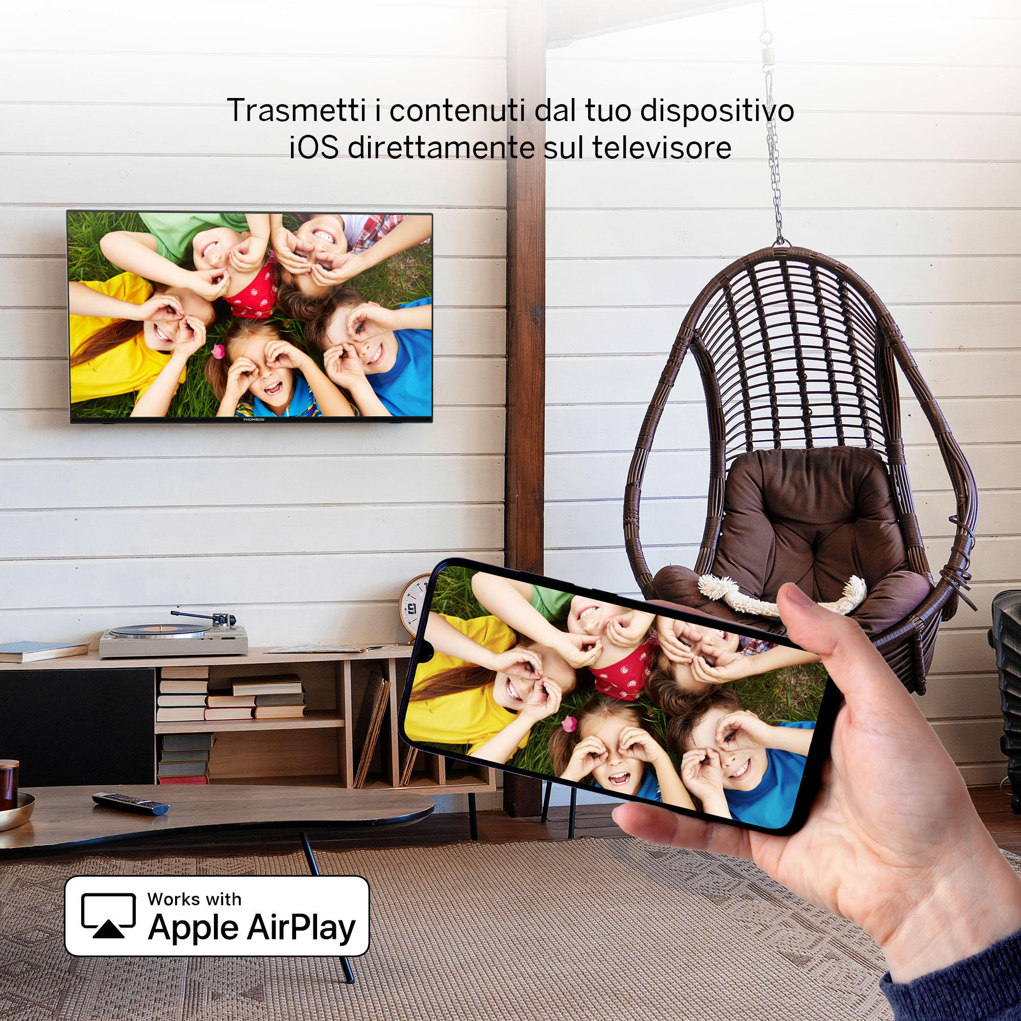 Il controllo vocale Alexa vi permette di controllare il televisore, cercare contenuti e gestire i dispositivi smart della casa. Trasmettete contenuti in streaming direttamente dai vostri dispositivi Apple con AirPlay e tenete sotto controllo la vostra casa smart con lo Smart Home Dashboard integrato.