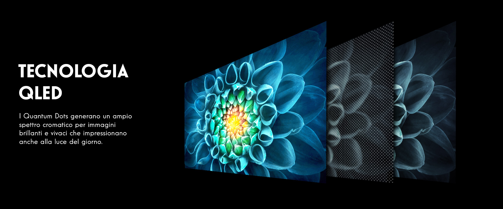 Grazie ai nanocristalli Quantum Dot, un display QLED offre una luminosità equilibrate, contrasti sorprendenti ed una gamma cromatica estesa. Il tutto con le immagini nitide e pulite di una TV FHD.