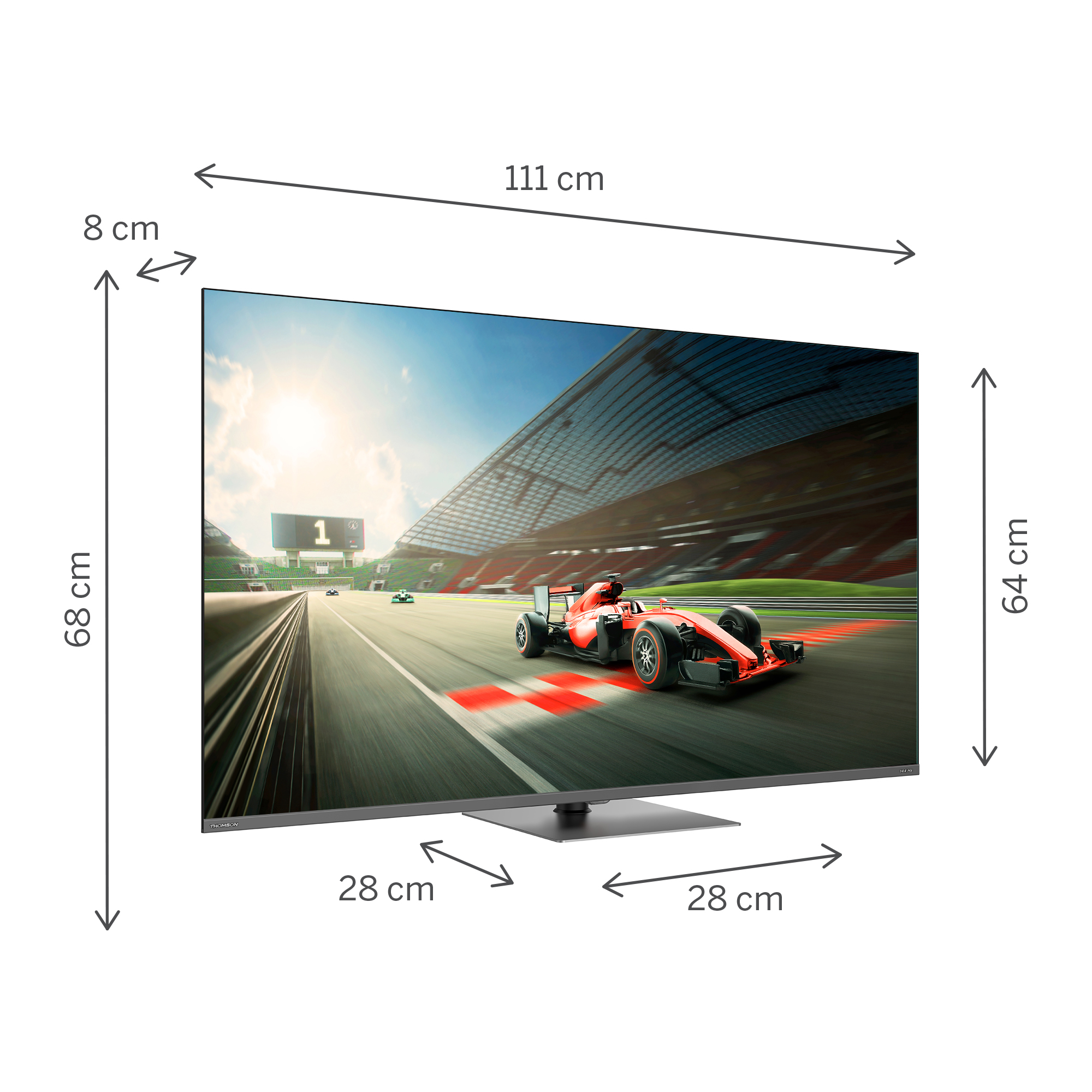 DISPLAY Screen size (inch / cm) 50” / 126 cm Display resolution 3840 x 2160 (4K UHD) Display Technology QLED Display frequency (Hz) 144 CPU CA75x2&1.3GHz + CA55x2&1.15GHz Picture modes Standard, Dynamic, Movie, ECO, Gentle, Vivid, Sport, Game, Personal Contrast ratio 4000:1 HDR10 √ Dolby Vision √ Color bit depth 10 bits (1 billion) Viewing angle (°) 178/178 Dynamic noise reduction √ Adaptive deinterlacing √ AUDIO Audio power output (W) 2 x 10 Dolby Audio √ Dolby Atmos √ Digital Surround √ Speaker type BOX AV Stereo √ Equalizer/Balance √ SMART TV Smart OS Google TV™ Memory 2G RAM , 16G Flash Voice control Google Assistant Wi-Fi 2.4G+5G Bluetooth version 5.0 Google Cast √ Electronic program guide √ Media player √ Sat: DiSEqC 1.0 / 1.1 / 1.2 Ethernet/LAN √ S/PDIF (coaxial/optical) 1x optical Direct access buttons on remote control Youtube, Netflix, Prime Video, Disney +, Apple TV, Live TV SUPPORTED FORMATS Video .3gp, .avi, .flv, .mkv, .mpv, .mp4, .mpg, .webm Audio .aac, .flac, .mp3, .wav Image .bmp, .gif, .jpg, .png CONNECTIVITY HDMI ports total 2 (2.0) + 2 (2.1) HDMI eARC √ (HDMI3) HDMI CEC √ USB ports 2 (2.0) + 1 (3.0) AV IN √ Unicable I / Unicable II √ Headphone compatible √ RECEPTION Triple Tuner DVB-T/T2/C/S/S2 Hbbtv √ CI+ √ Parental control √ PVR / Time-Shift - Hotel mode - HEVC/H.265 √ DESIGN Frame design Frameless Feet design Central Swivel Stand Color Grey Remote control Bluetooth, Backlit Buttons ENERGY CONSUMPTION Energy class (SDR) F Energy consumption in kWh/1000h (SDR) 64 Energy class (HDR) F Energy consumption in kWh/1000h (HDR) 65 Standby mode power demand 0,5 Networked standby mode power demand 2 Input power range AC 100-240V 50/60Hz LOGISTICS Dimensions with stand (LxWxH) in mm 1111x281x676 Dimensions without stand (LxWxH) in mm 1111x75x643 Carton dimensions (LxWxH) in mm 1210x142x763 Weight with stand (kg) 13 Weight without stand (kg) 10,7 Weight with carton (kg) 15,7 Wall mount VESA (not incl.) 200x200 EAN Code 9120106662801 - Manuali & Software Manuali e Software... Per saperne di più