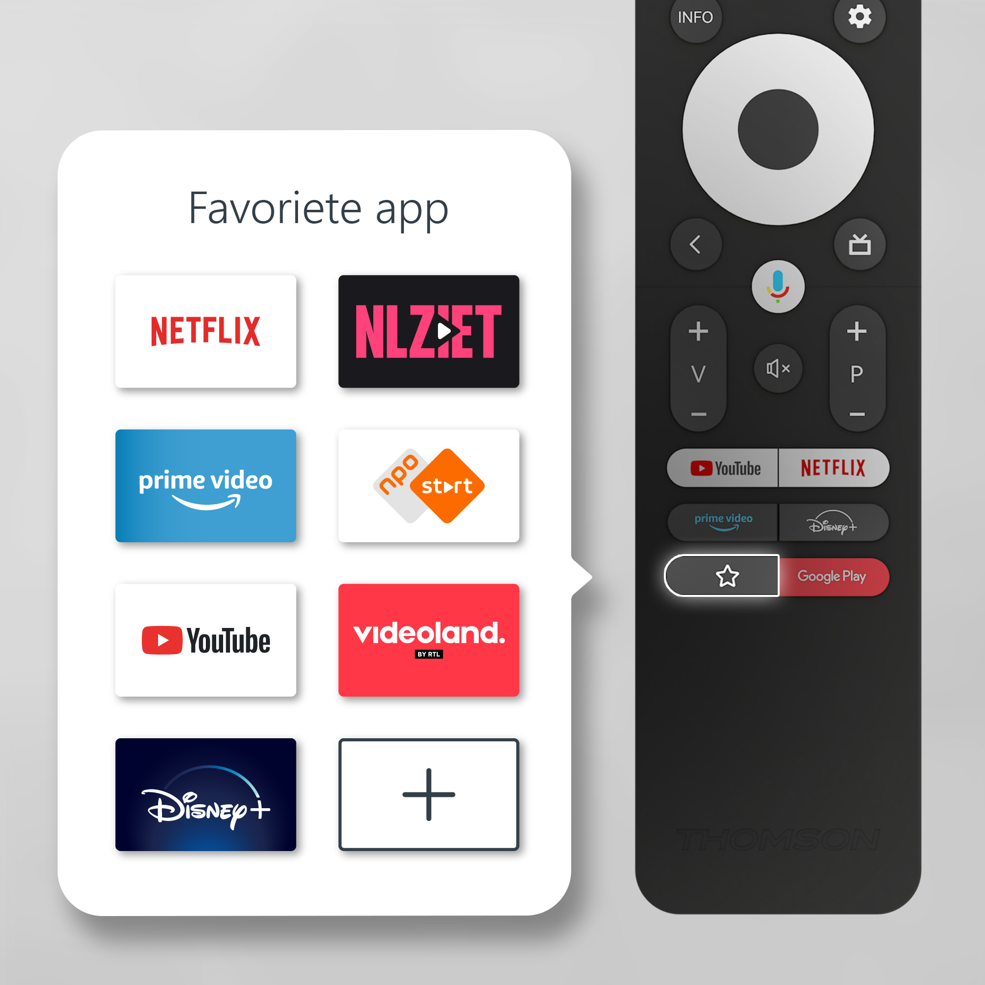 Met de ergonomische afstandsbediening met achtergrondverlichting kun je alles in de gaten houden, zelfs bij weinig licht. Krijg snel toegang tot jouw favoriete app met de FAVORIET-knop. Met de geïntegreerde Google Assistent kun je je TV intuïtief bedienen met spraakopdrachten. Zoek naar je favoriete films, vraag om aanbevelingen op basis van je stemming of bedien compatibele smartapparaten - allemaal met het gemak van je stem.