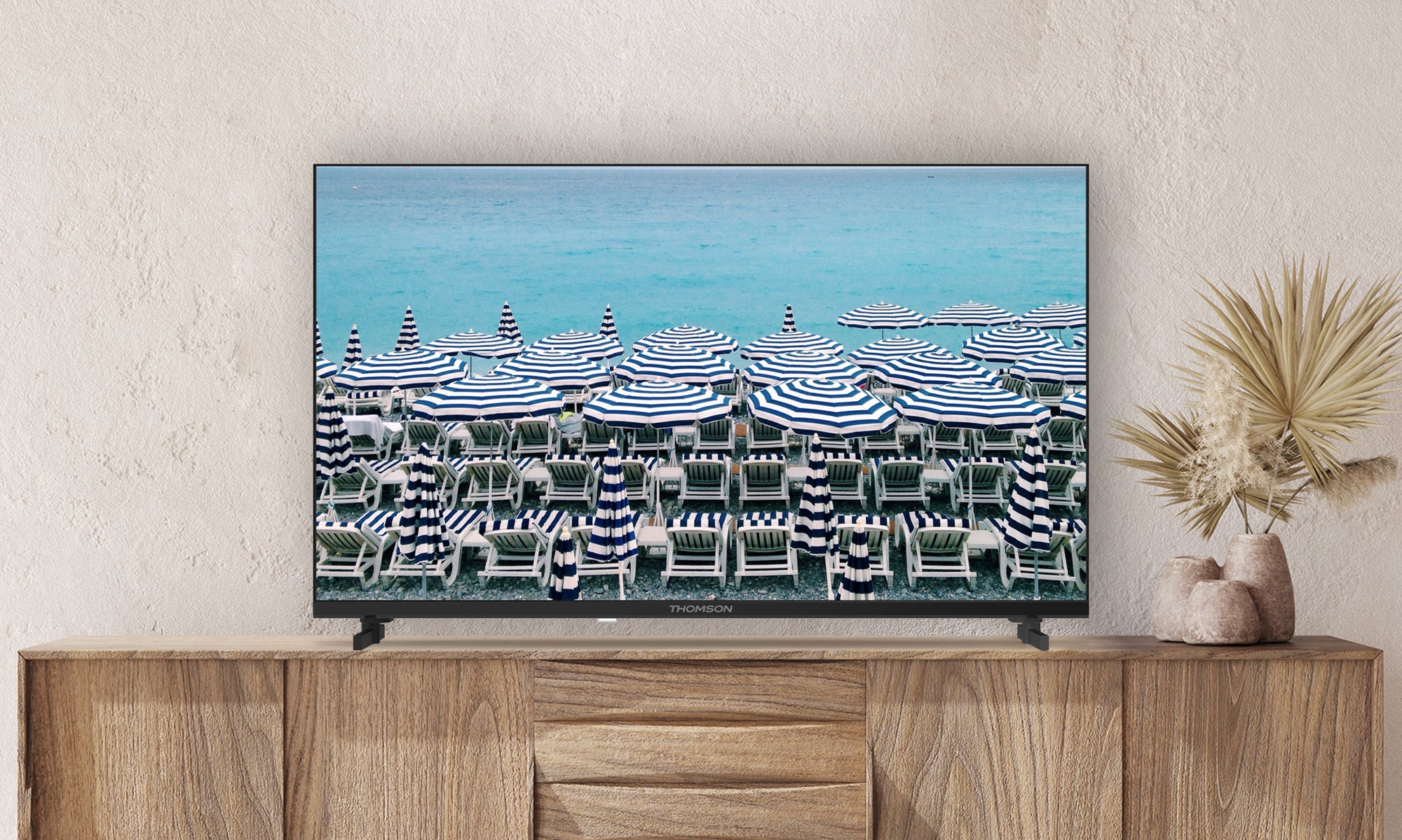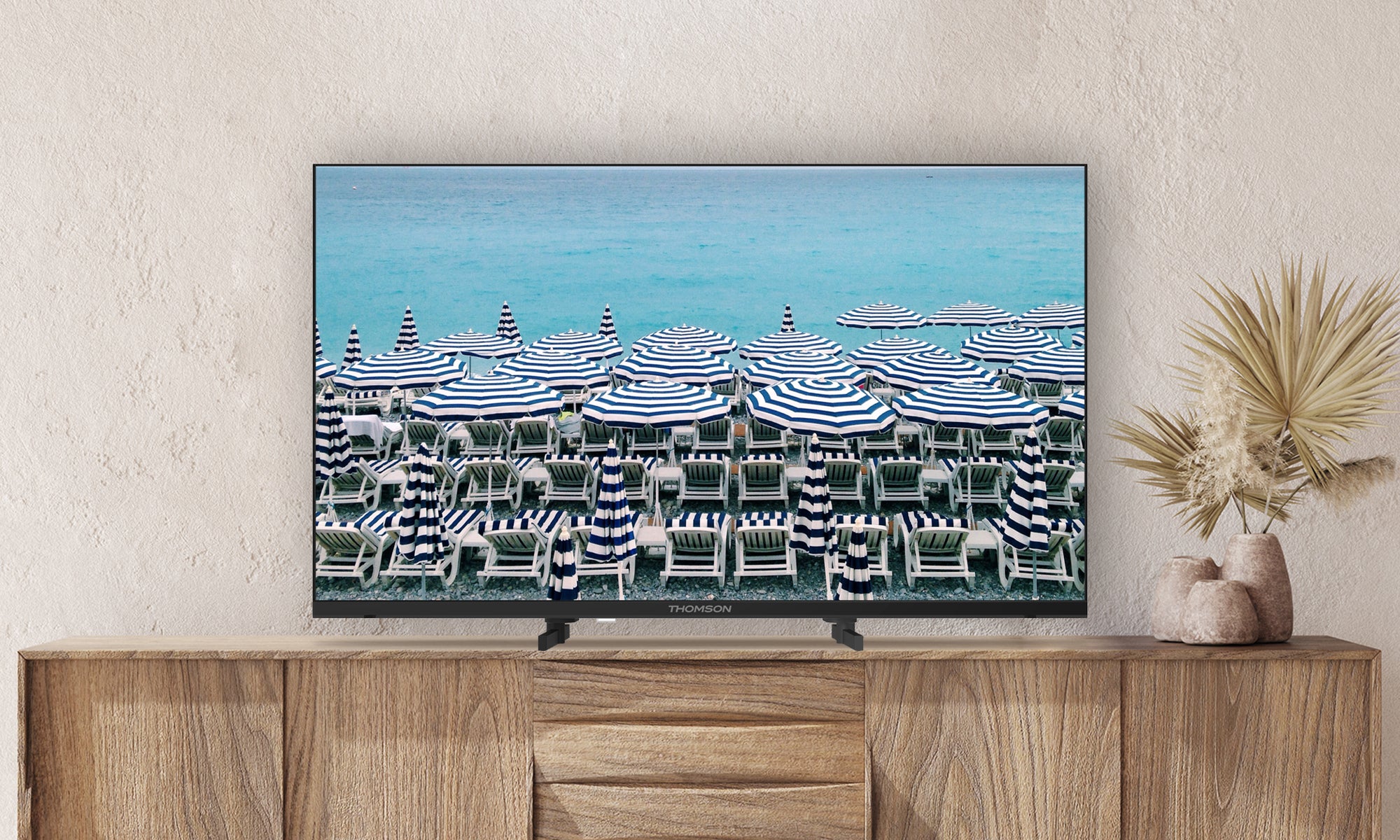 Whatever the width of your TV console, shelf or sideboard, your Thomson TV will fit in any space. With two different feet assembly positions you can reduce the footprint from 60 to 30 cm. The flexible stand feature is available for all 24" and 32" TVs.