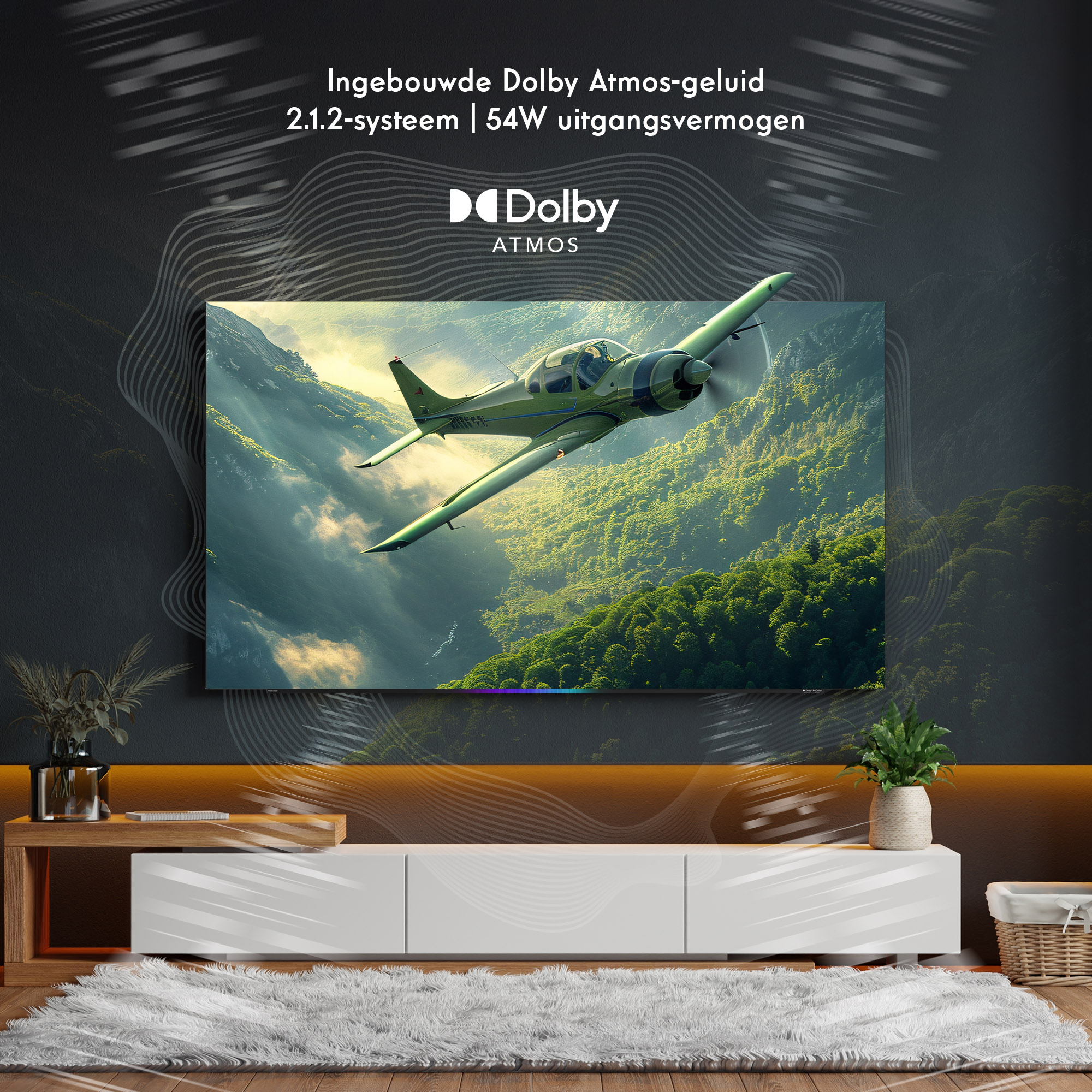 Voor degenen die houden van snelle actie of gamen, zorgt de verversingssnelheid van 120 Hz voor vloeiende beelden, waardoor bewegingsonscherpte zelfs in snelle scènes wordt geëlimineerd. Of je nu naar een blockbuster kijkt of videogames speelt, alles ziet er vloeiend en levensecht uit. Om de beeldkwaliteit verder te verbeteren, past Dolby Vision IQ de helderheid en het contrast dynamisch aan op basis van het omgevingslicht in je kamer, wat zorgt voor het perfecte beeld op elk moment van de dag, ongeacht de lichtomstandigheden.