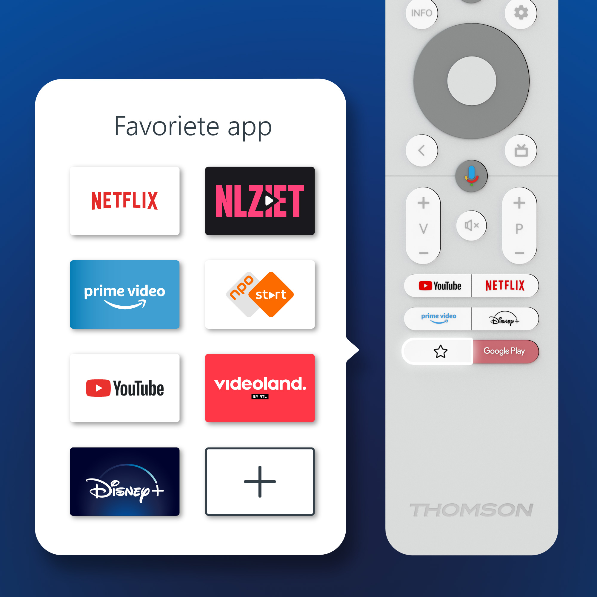 Ben je de afstandsbediening van je tv kwijt of kapot? Vervang hem dan gewoon door de officiële Thomson Android TV Bluetooth-afstandsbediening. Het is hetzelfde model dat bij uw tv werd geleverd, zodat u verzekerd bent van volledige compatibiliteit en vertrouwdheid.