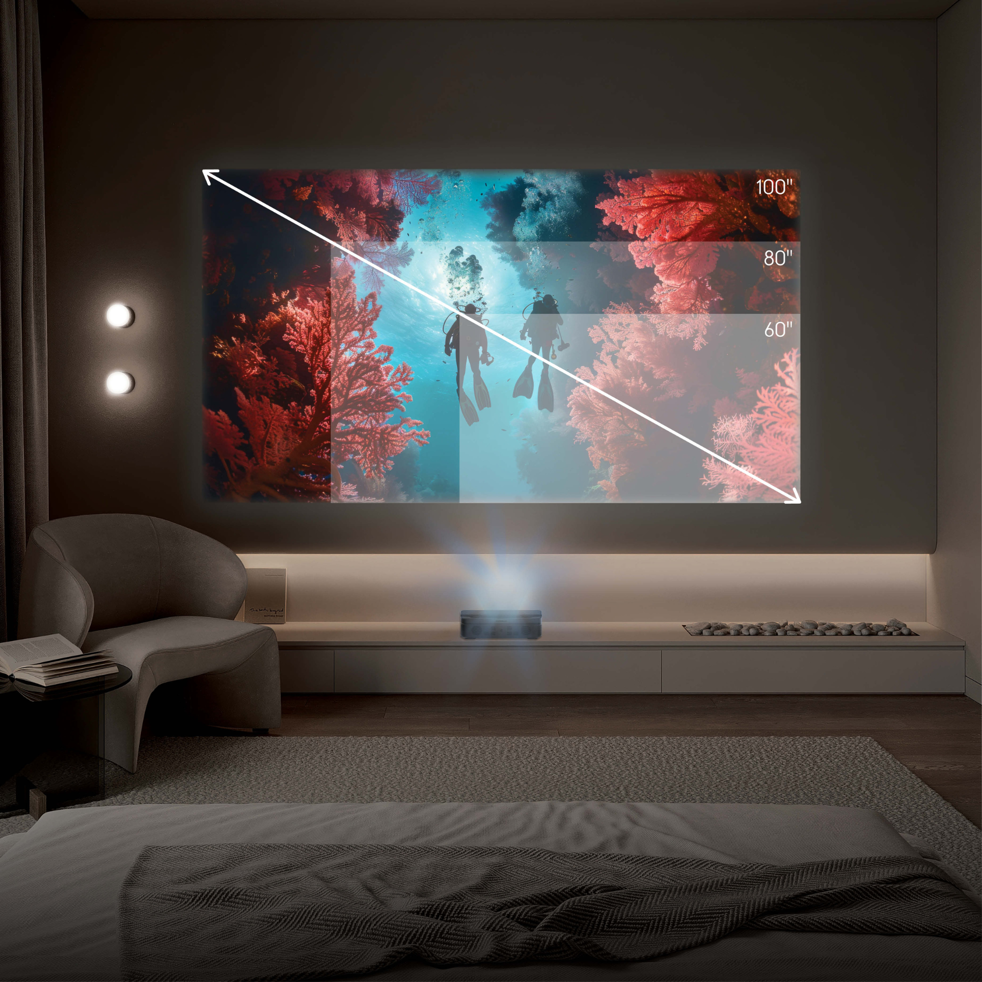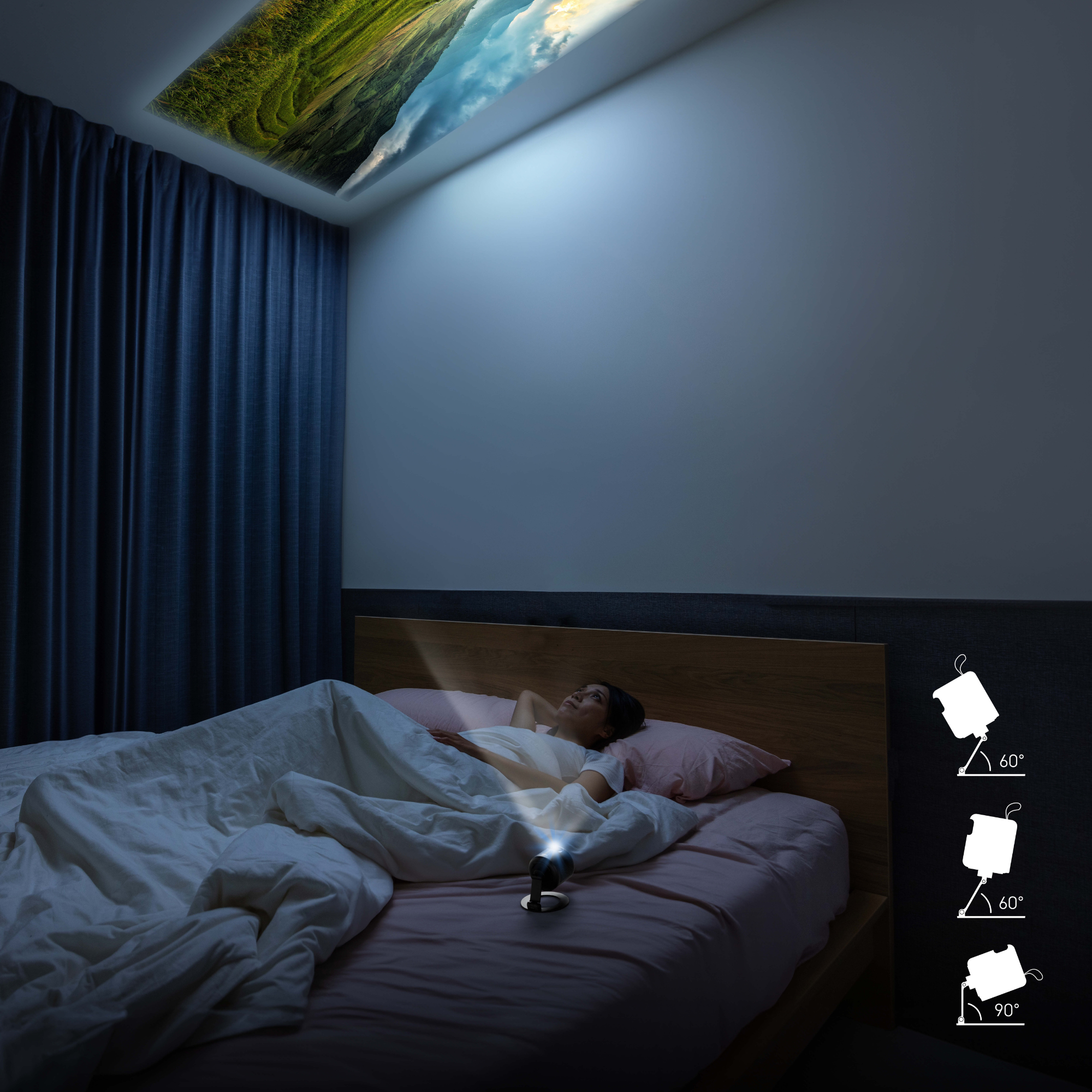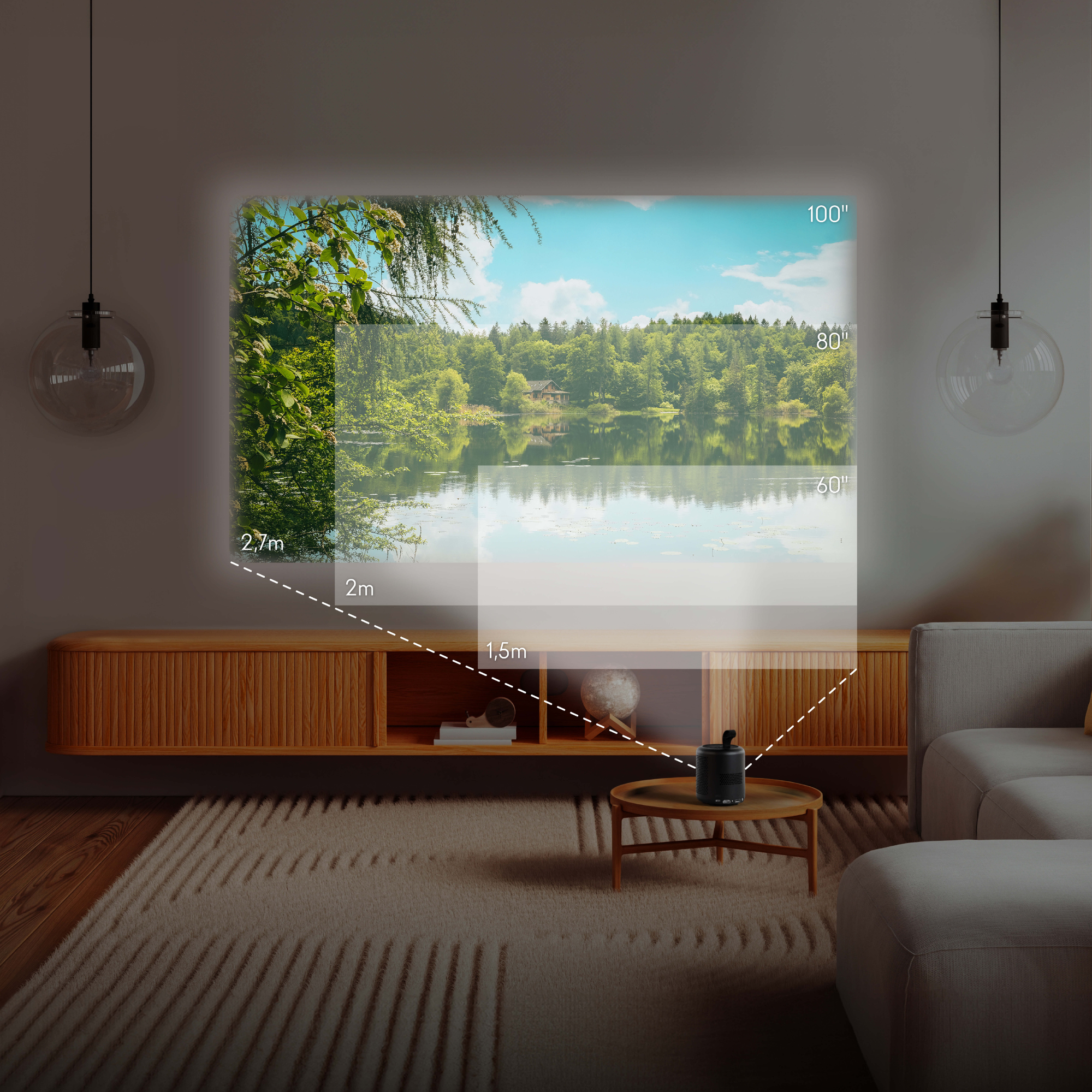Meet Vega, the portable projector that fits beautifully into your everyday life. Vega goes wherever you do, thanks to its lightweight design and built-in battery, from cosy indoor spaces to open-air evenings in your garden. Project stunning visuals up to 100" with ease, and set up effortlessly using the included adjustable bracket.