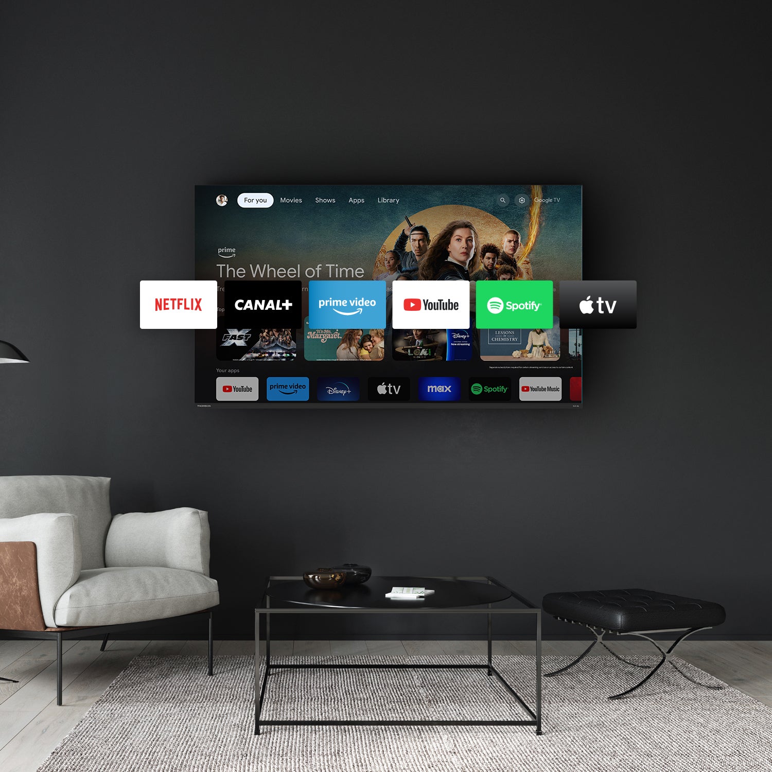 4K Ultra-HD | Google TV | Google Voice Control | Google Cast | Netflix/YouTube/Prime Video/Disney+/Spotify | Wi-Fi | Bluetooth 5.2 | HDMI 2.1 | USB 3.0 | Dolby Vision | HDR10+ | Dolby Atmos | Dolby Digital+ | 3 GB RAM | 32 GB Flash