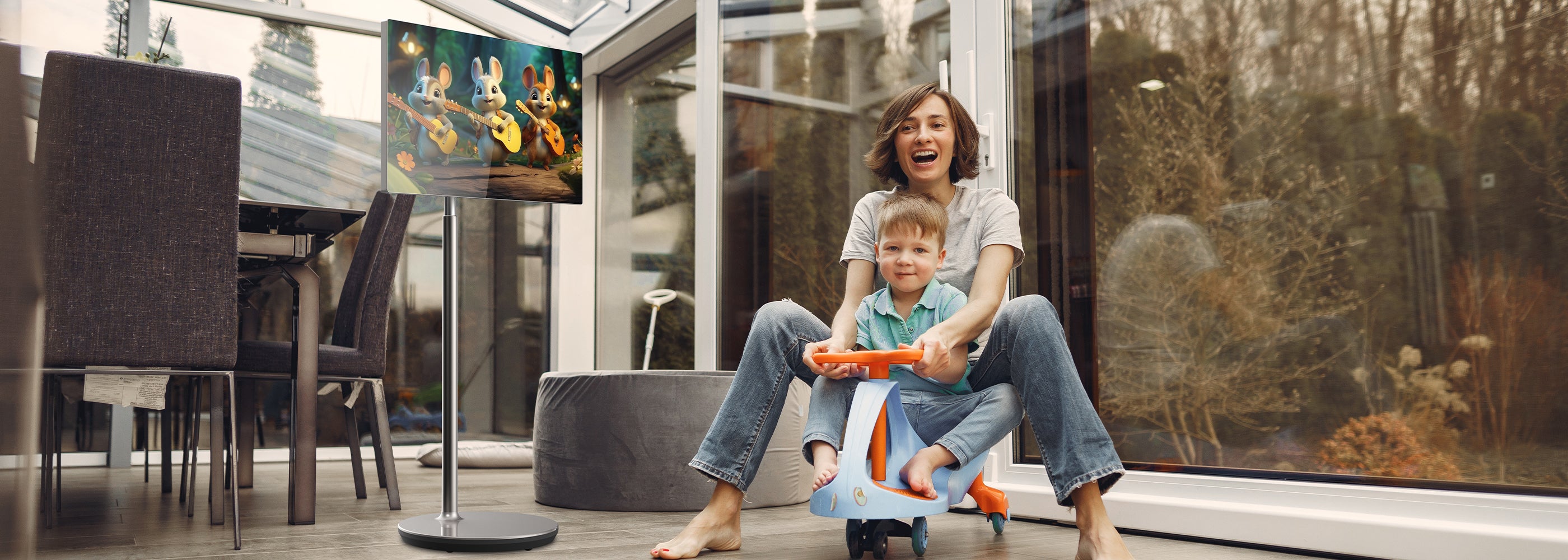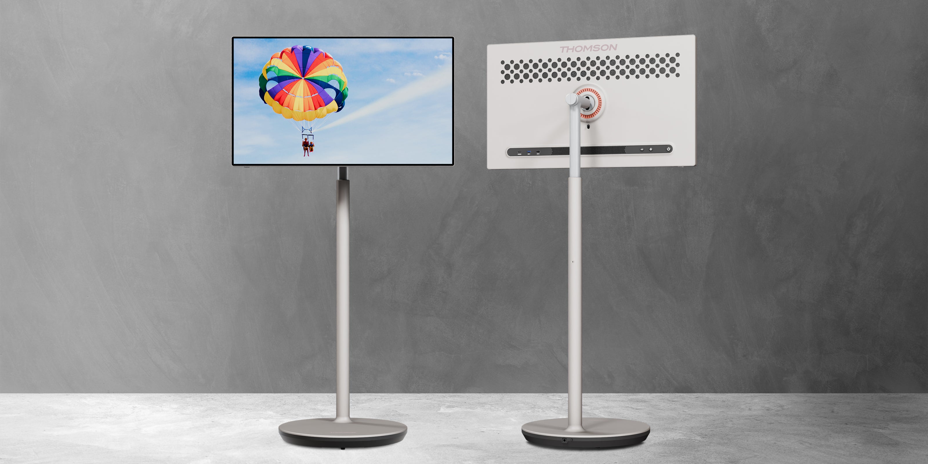 Take your viewing experience anywhere with the Thomson Go Plus. Its built-in battery provides up to 4 hours of unplugged entertainment, so cords never tie you down. The rolling wheels let you move it effortlessly from room to room, while adjustable tilt, height, and rotation ensure the perfect viewing angle every time. Versatile, convenient, and always ready - this is entertainment on your terms!