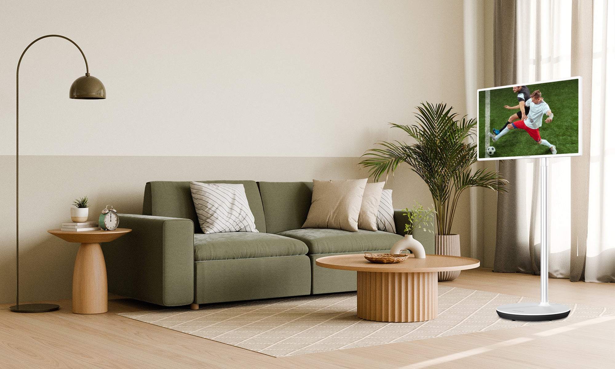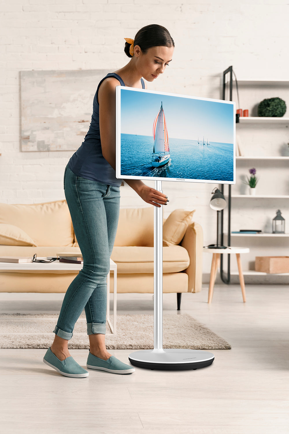 Take your viewing experience anywhere with the Thomson Go TV. Its built-in battery provides up to 4 hours of unplugged entertainment, so you're never tied down by cords. The rolling wheels let you move it effortlessly from room to room, while adjustable tilt, height, and rotation ensure the perfect viewing angle every time. Versatile, convenient, and always ready - this is entertainment on your terms!