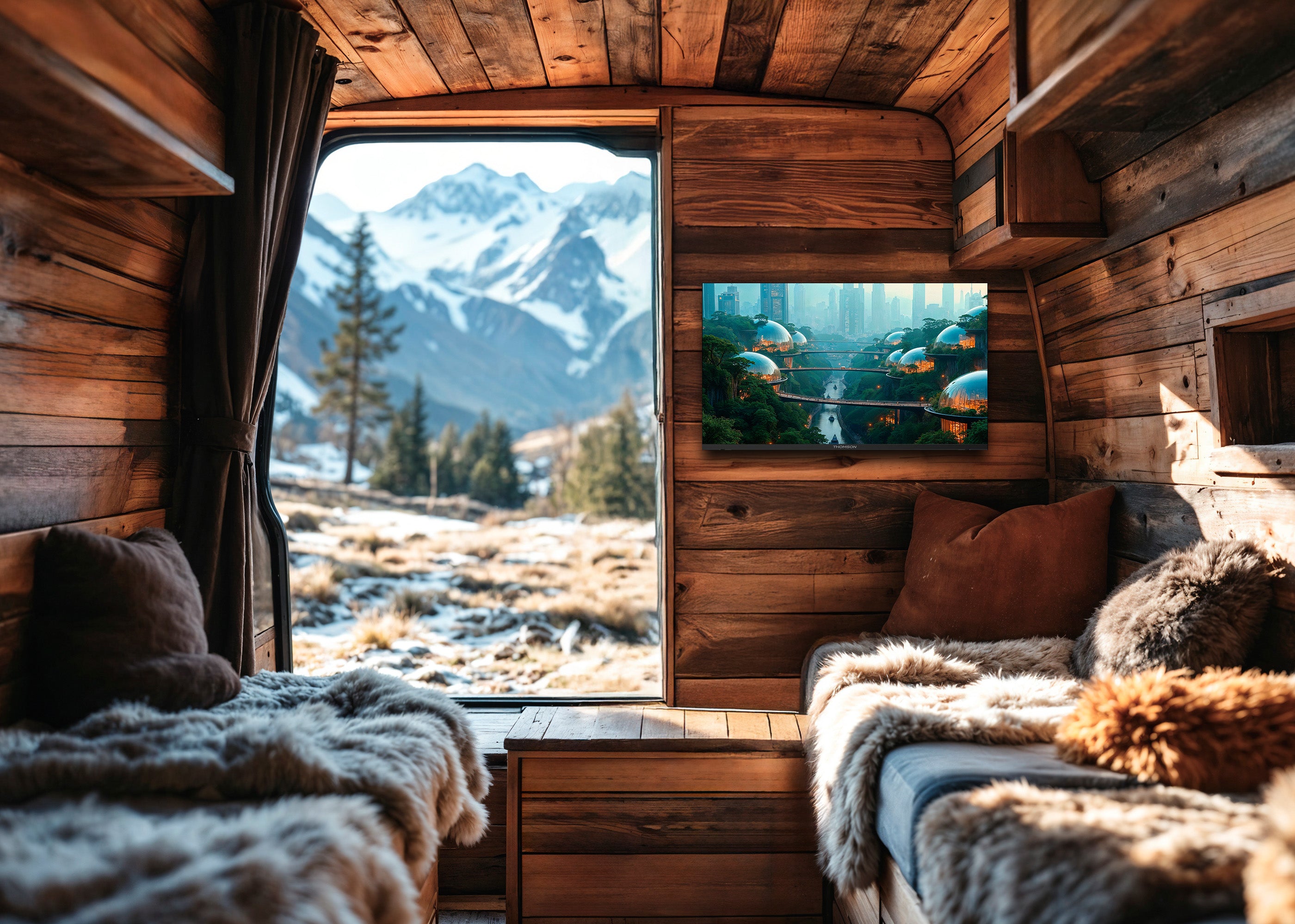 Our 12V FHD TV combined with a streaming stick gives you instant access to your personalized entertainment library, from blockbuster hits to your favourite series. Whether you're parked at a scenic campsite or taking a break on the road, you can stream effortlessly and enjoy the comforts of home - anytime, anywhere!