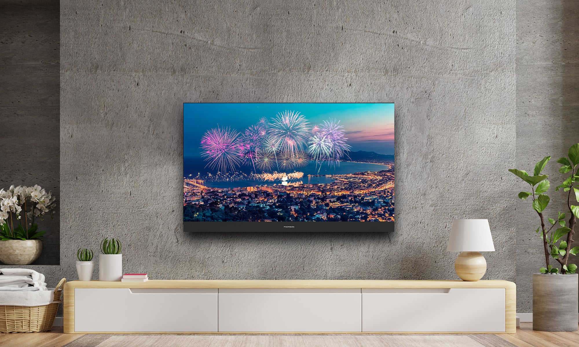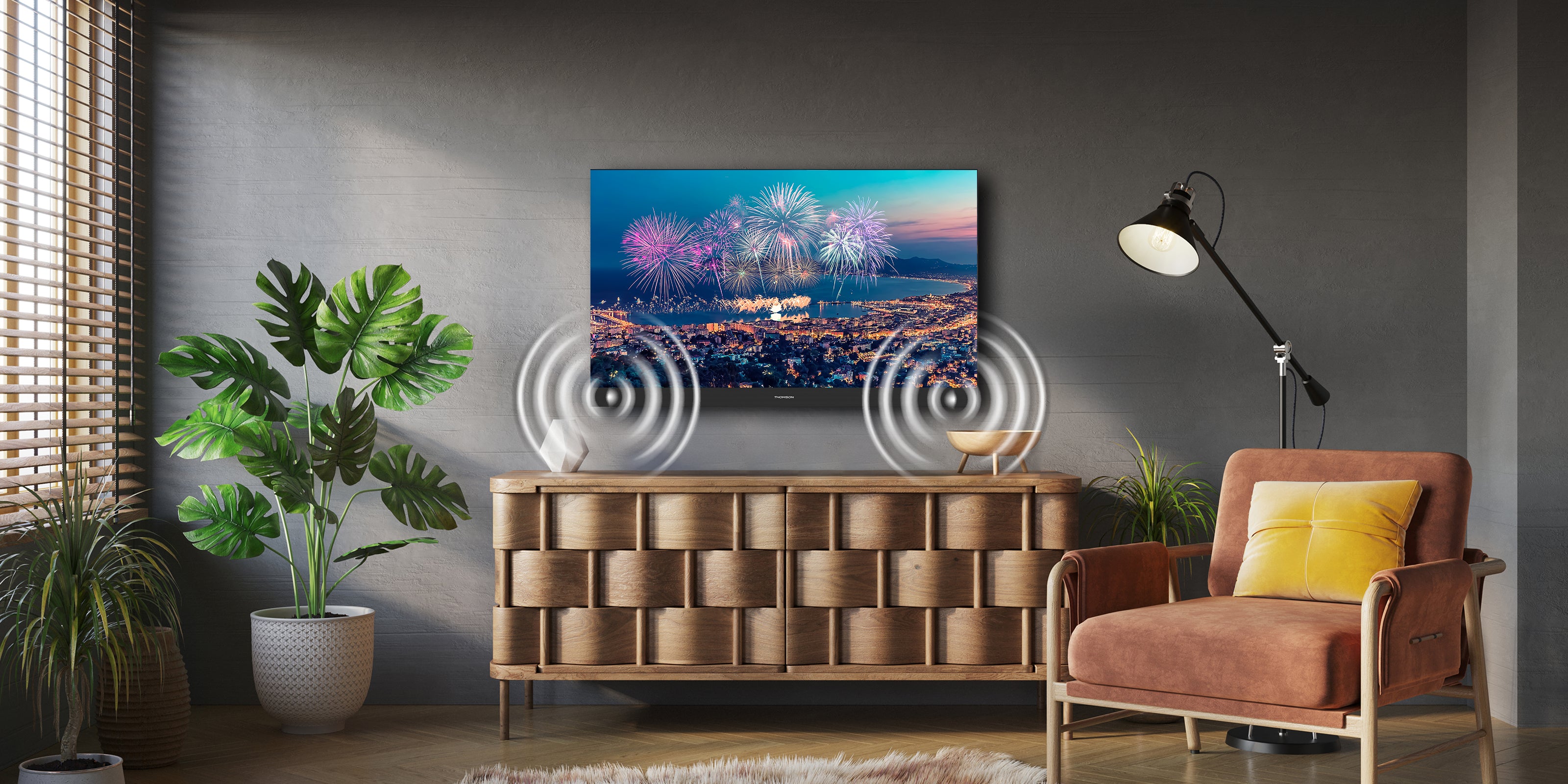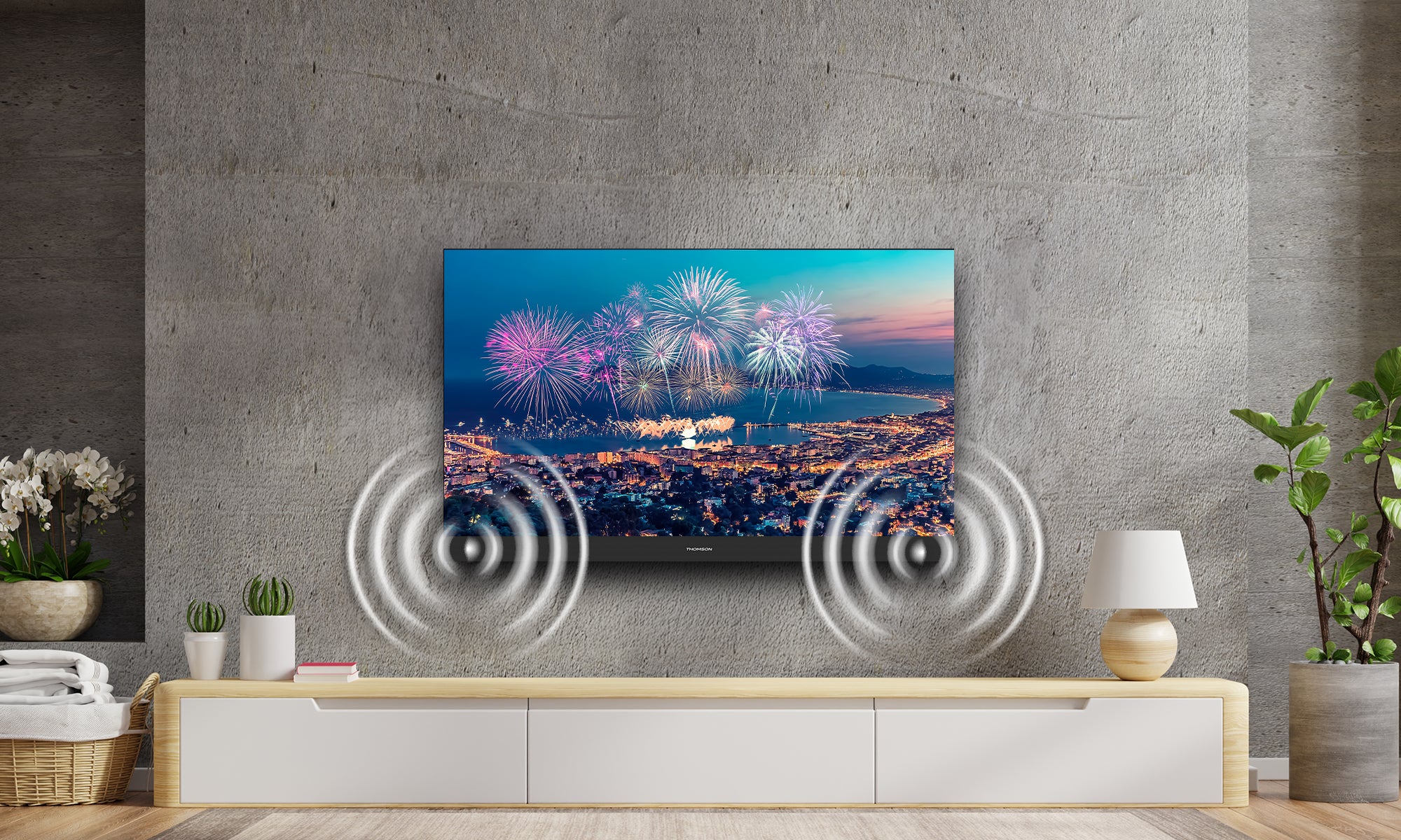 Thomson QLED Plus TVs are equipped with high-quality front speakers that are integrated into the lower edge of the screen. Benefit from additional sound depth and quality and no longer just hear or see a movie but feel it.