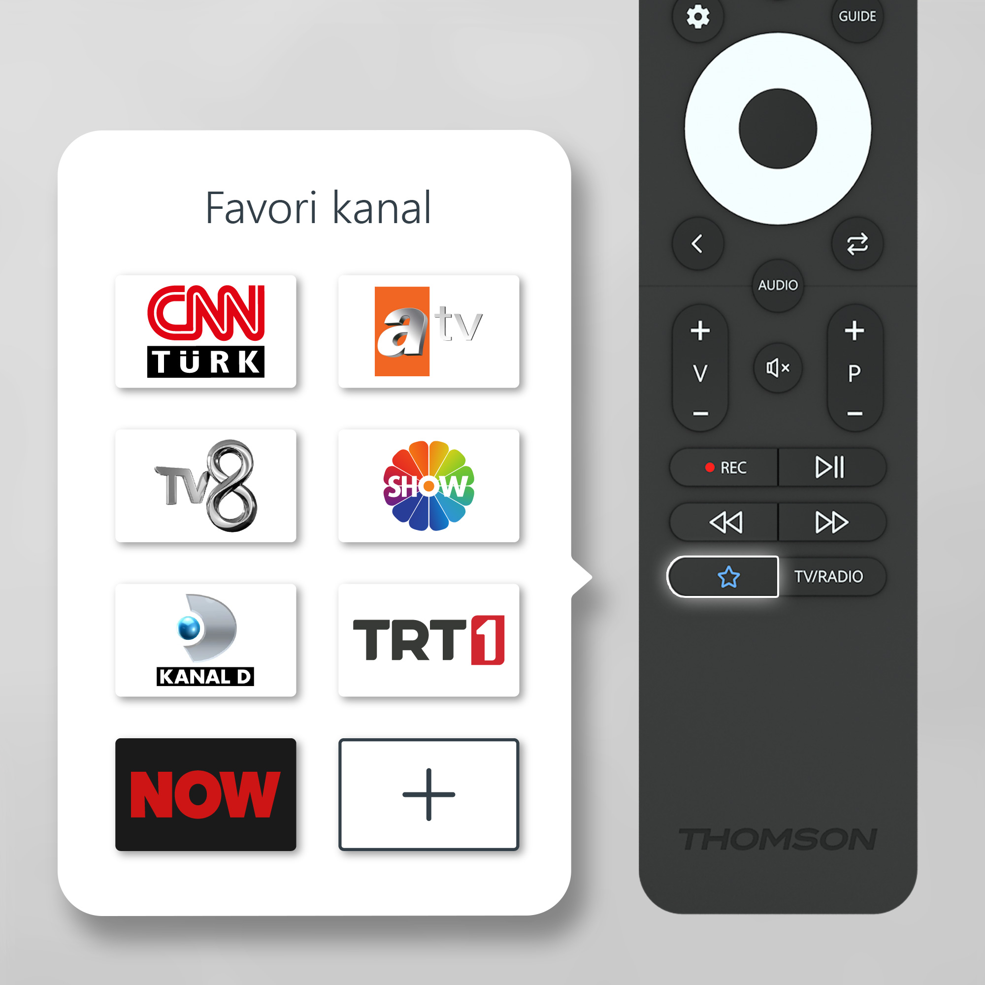 Eğlence kolaylaştırıldı. Thomson TV'niz 24” HD size daha az karmaşıklıkla sağlam bir TV deneyimi sunar. Kablo bağlantısı (DVB-C), uydu bağlantısı (DVB-S2) veya karasal televizyon (DVB-T2) fark etmeksizin, Thomson TV'niz her türlü alım için hazırdır. Dahili üçlü tuner ve şifreli programlar için CI+ yuvası sayesinde ek donanıma gerek yoktur.