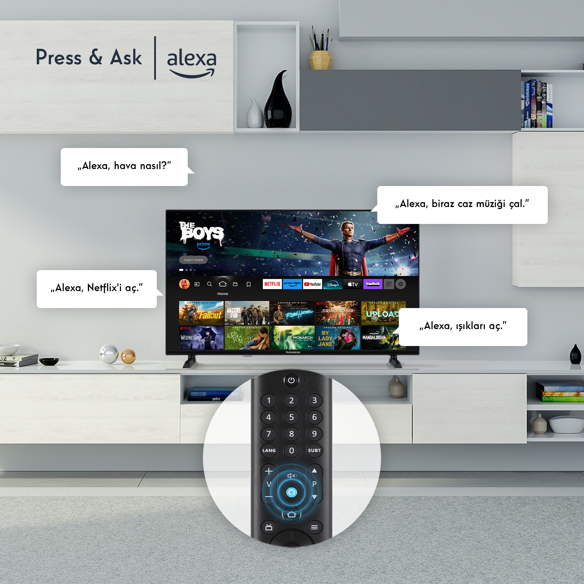 Alexa Sesle Kontrol ile yalnızca sesinizi kullanarak TV'nizi zahmetsizce kontrol edin, içerik arayın ve akıllı ev cihazlarını yönetin. AirPlay ile Apple cihazlarınızdan doğrudan içerik akışı yapın ve entegre Smart Home Dashboard ile akıllı evinizi takip edin.