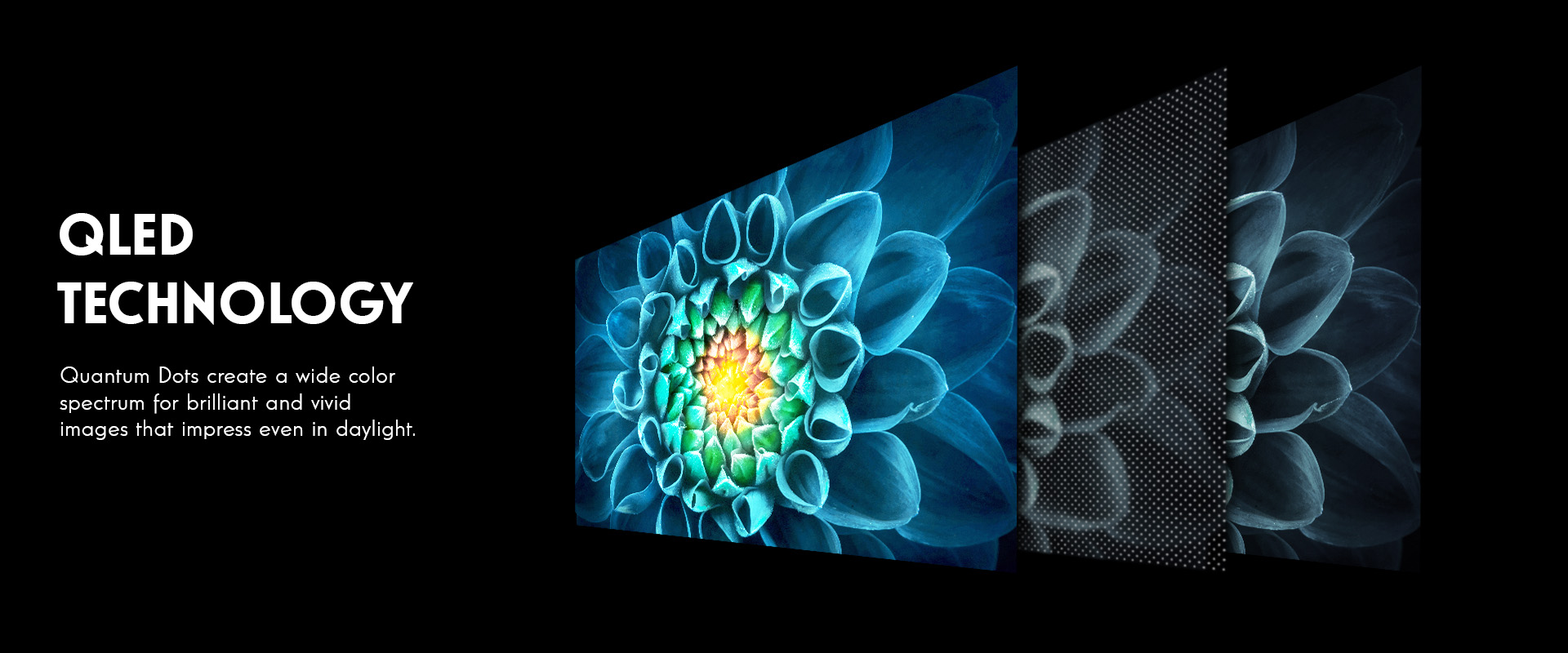 Дисплей QLED на основі нанокристалів Quantum Dot забезпечує збалансовану яскравість, вражаючу контрастність і розширений колірний діапазон. У поєднанні з роздільною здатністю 4K Ultra HD ви зможете розгледіти кожну деталь і зануритися у кришталево чисте зображення. Технологія Dolby Vision підвищує яскравість кожної сцени, забезпечуючи точну передачу кольору для реалістичних зображень. Насолоджуйтесь динамічним звуком з Dolby Atmos для повного занурення в телевізійний простір.