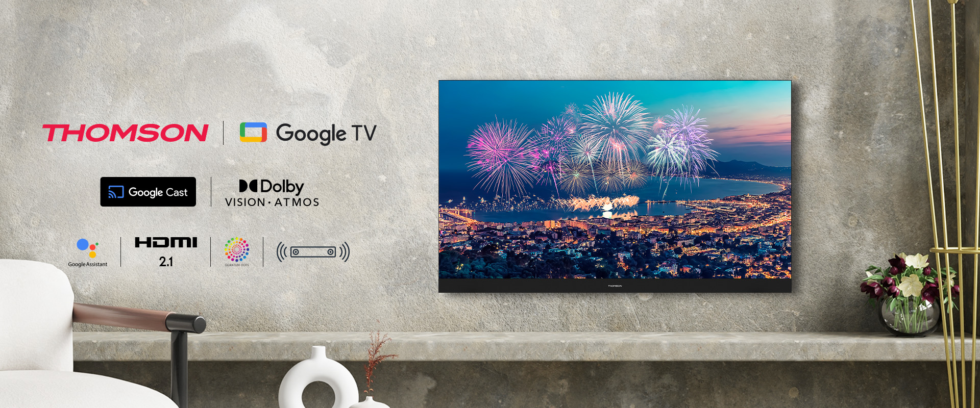 Насолоджуйтеся різноманітністю розваг та неймовірною якістю з телевізором Thomson Google TV 43” QLED Plus.