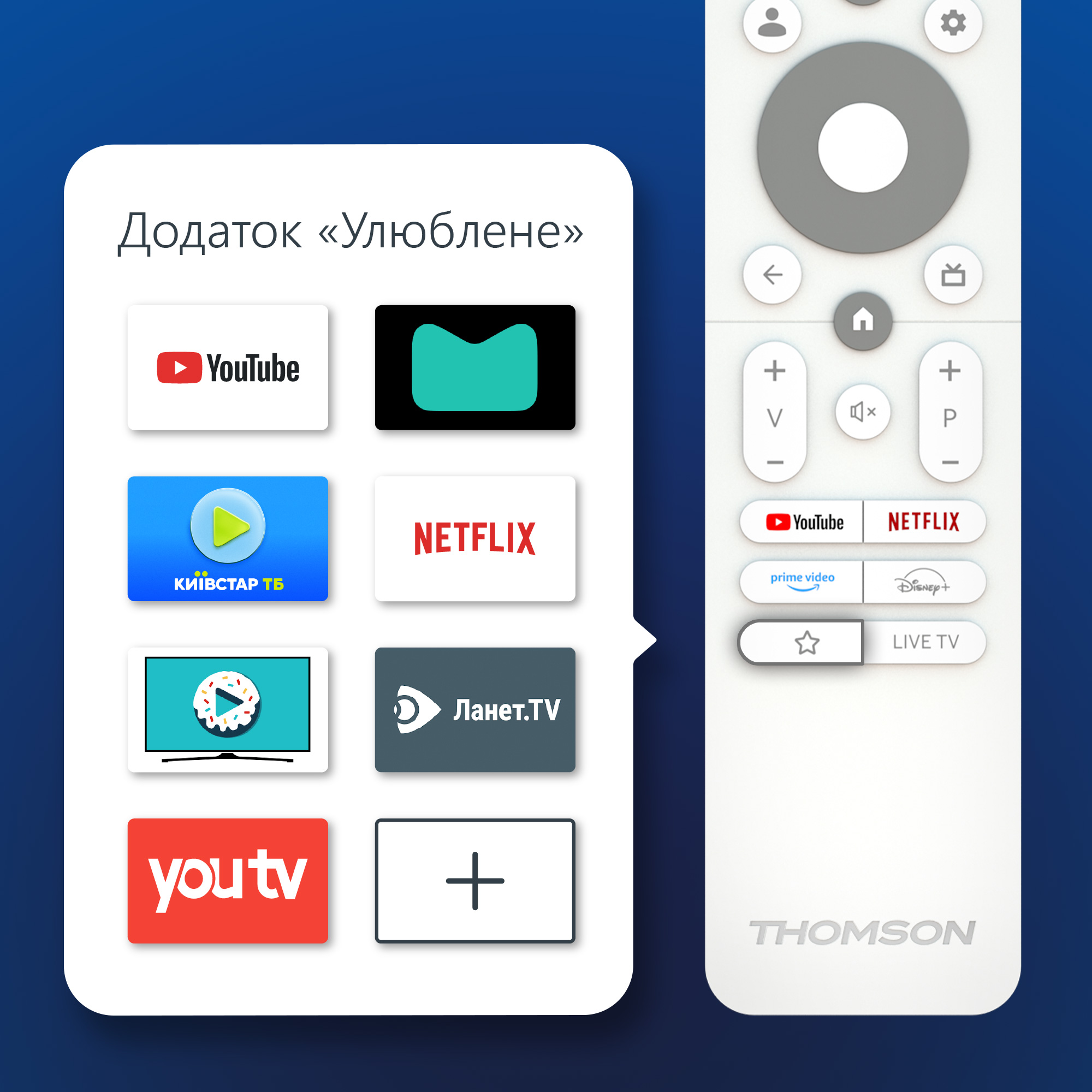 Кнопки прямого доступу: Відкривайте Netflix, Prime Video, YouTube, Apple TV та Disney+ одним натисканням.